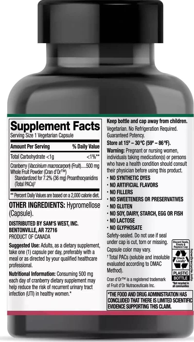 Member's Mark Clinical Strength 500mg Cranberry Dietary Supplement 2 Packs (150 Count.) Cranberry Naturally Helps Your Body