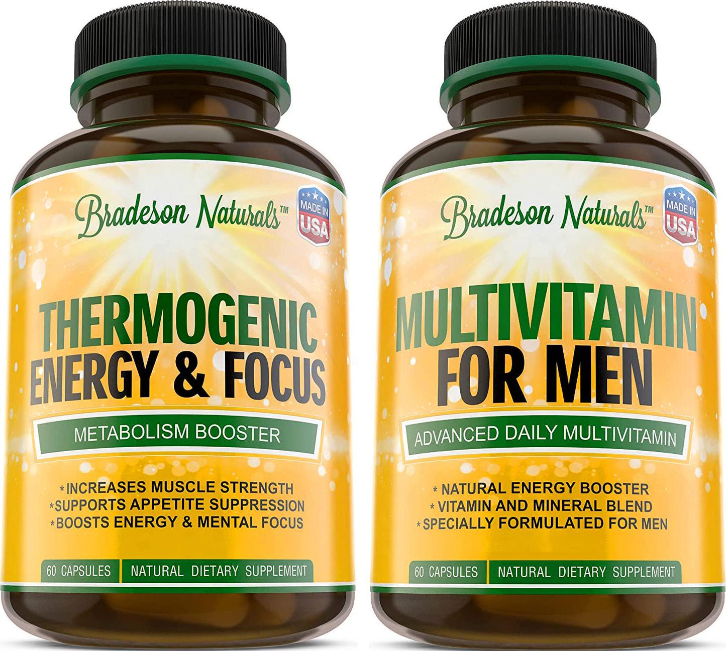 Men's Multivitamin + Thermogenic Energy and Focus, 2 Bottles Bundle. Improves Cardiovascular and Prostate Health. Antioxidant and Natural Energizer + 2 Months Supply Thermogenic with Green Tea Extract Raspb