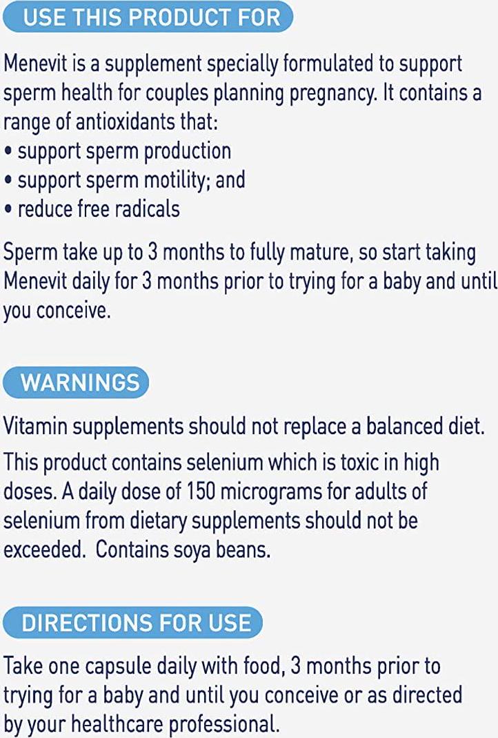 antioxidants, capsules, conception, male fertility supplement, menevit, sperm health
