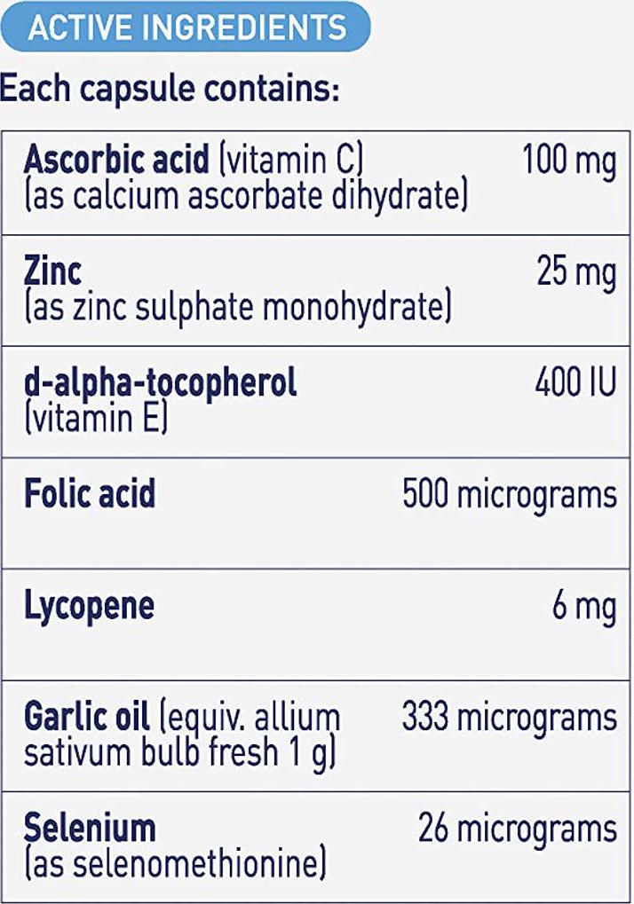 - Unique combination of antioxidants including Vitamin C, selenium and zinc.