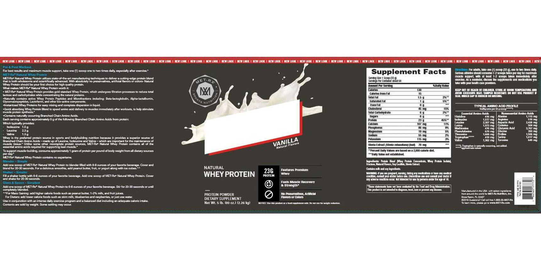 30g protein, bcaas, met-rx natural whey, protein powder, vanilla