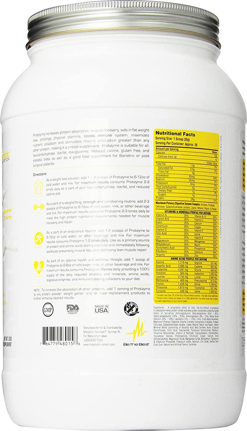 Metabolic Nutrition Protizyme Banana Creme Protein Supplement, 907 Grams