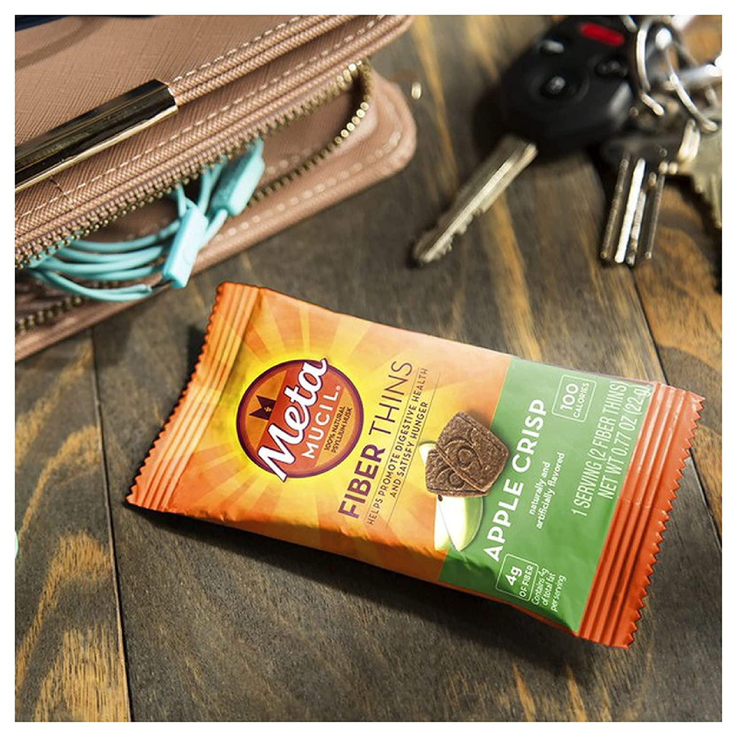Metamucil Apple Crisp Fiber Thins are delicious crunchy fiber snacks that provide 4 grams of fiber with just 100 calories per serving (4g total fat). They help satisfy hunger and contain over 15% of your daily recommended value of fiber to help promote digestive health.