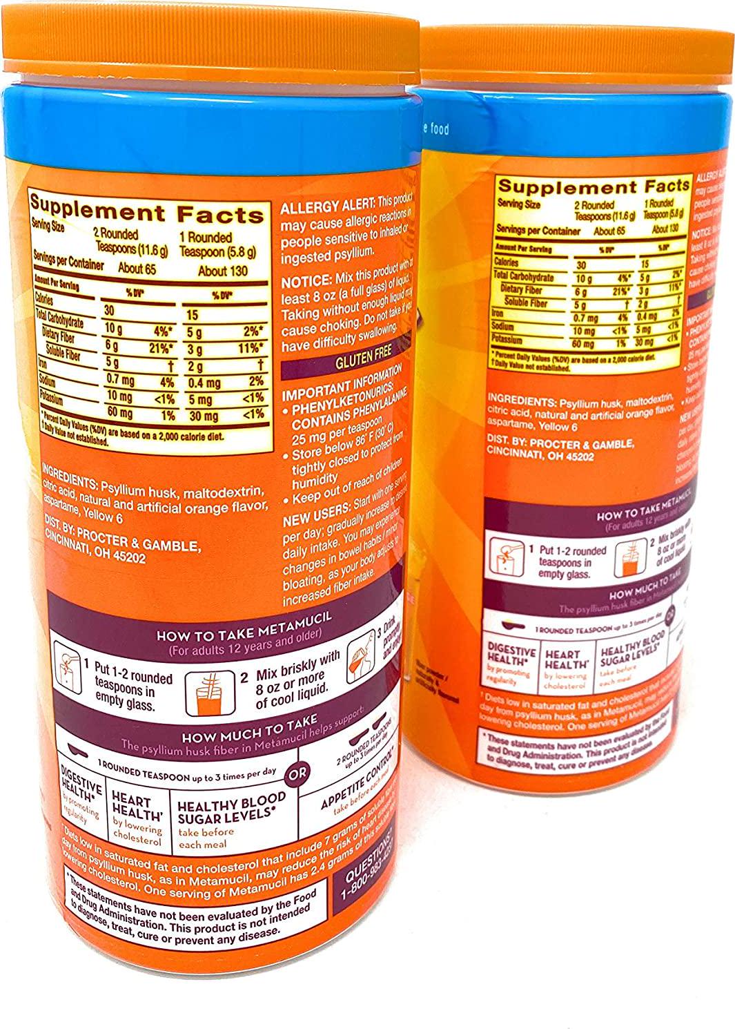 260 servings, digestive health support, metamucil, orange smooth, sugar free fiber supplement, usa