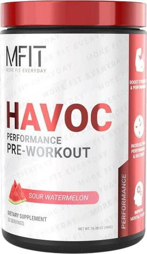 MFIT SUPPS Havoc - Pre-Workout Powder for Energy, Strength, Endurance and Focus - Sour Watermelon Flavor - 20 Servings