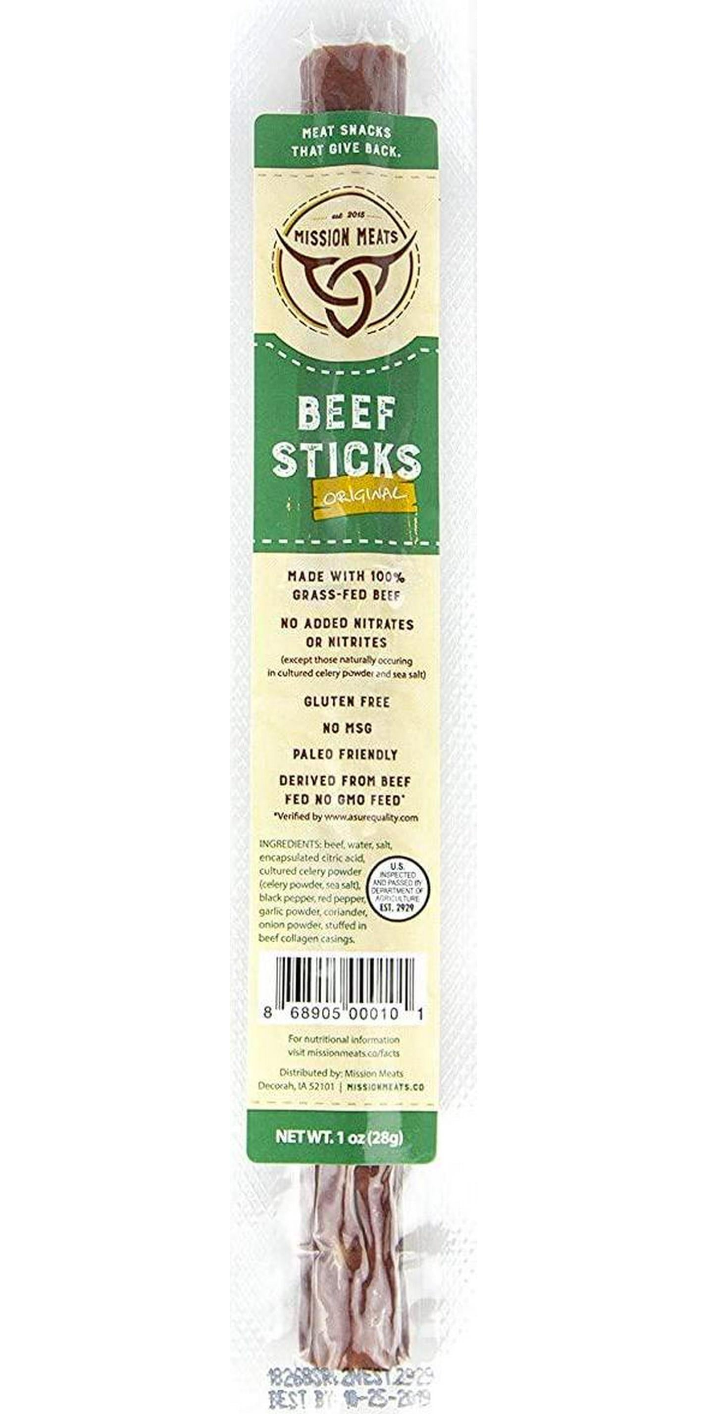 Mission Meats Sugar Free Keto Snacks Grass Fed Beef Sticks Whole 30 Gluten Free MSG Free Nitrate Nitrite Free Paleo Healthy Snacks Natural Meat Sticks Beef Jerky Zero Sugar Protein Snacks Weight Loss (Original Beef Sticks, 10 Count Pack of 1)