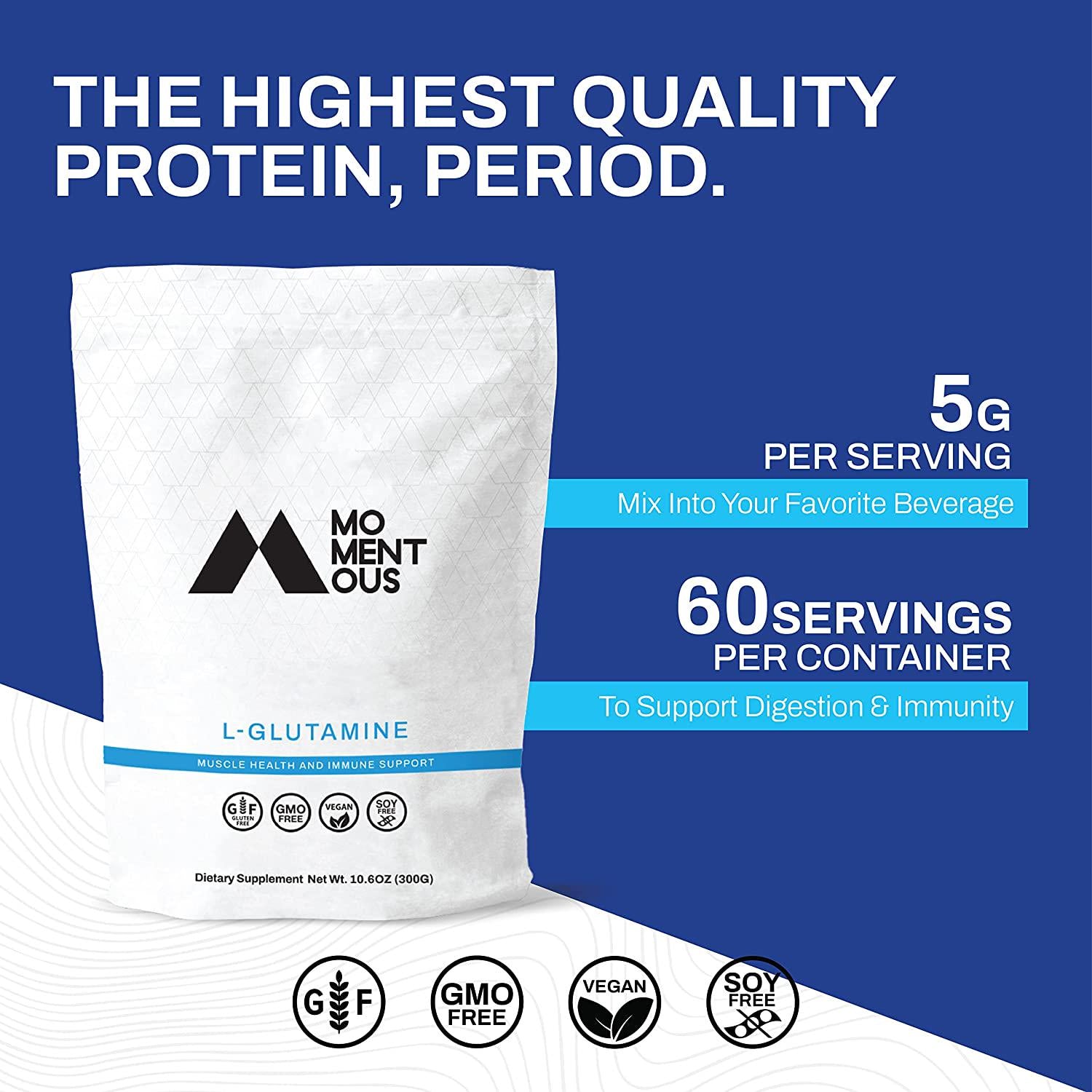 huberman stack, l-glutamine powder, momentous, optimize performance, promote healthy digestion, support immunity, usa