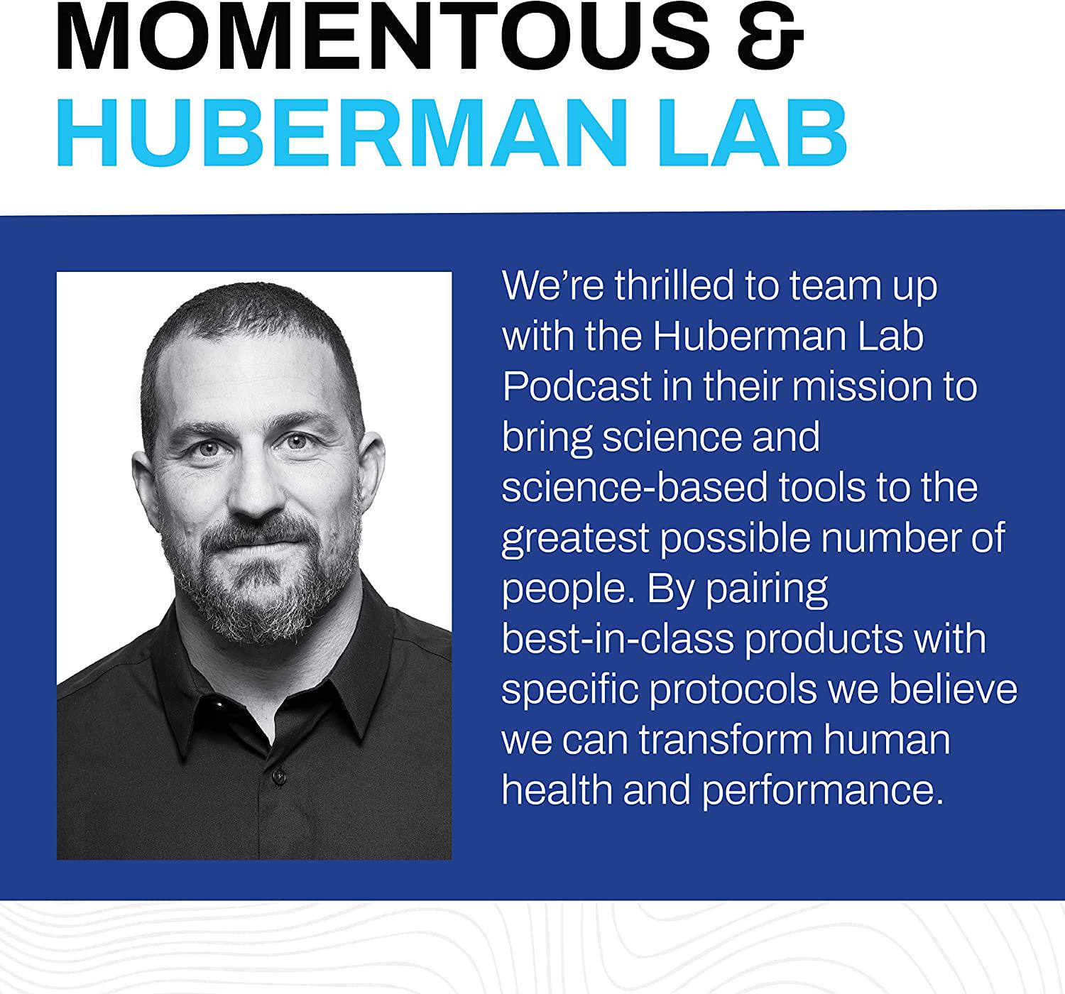 - Momentous and Huberman Lab - We re thrilled to team up with the Huberman Lab Podcast in their mission to bring science and science-based tools to the greatest possible number of people. By pairing best-in-class products with specific protocols we believe we can transform human health and performance.