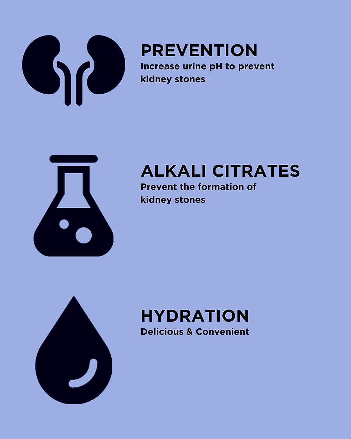 - BENEFICIAL INGREDIENTS: A patented formula rich in alkali citrate, this drink mix provides daily support for kidney health by helping manage urine pH and citrate levels.