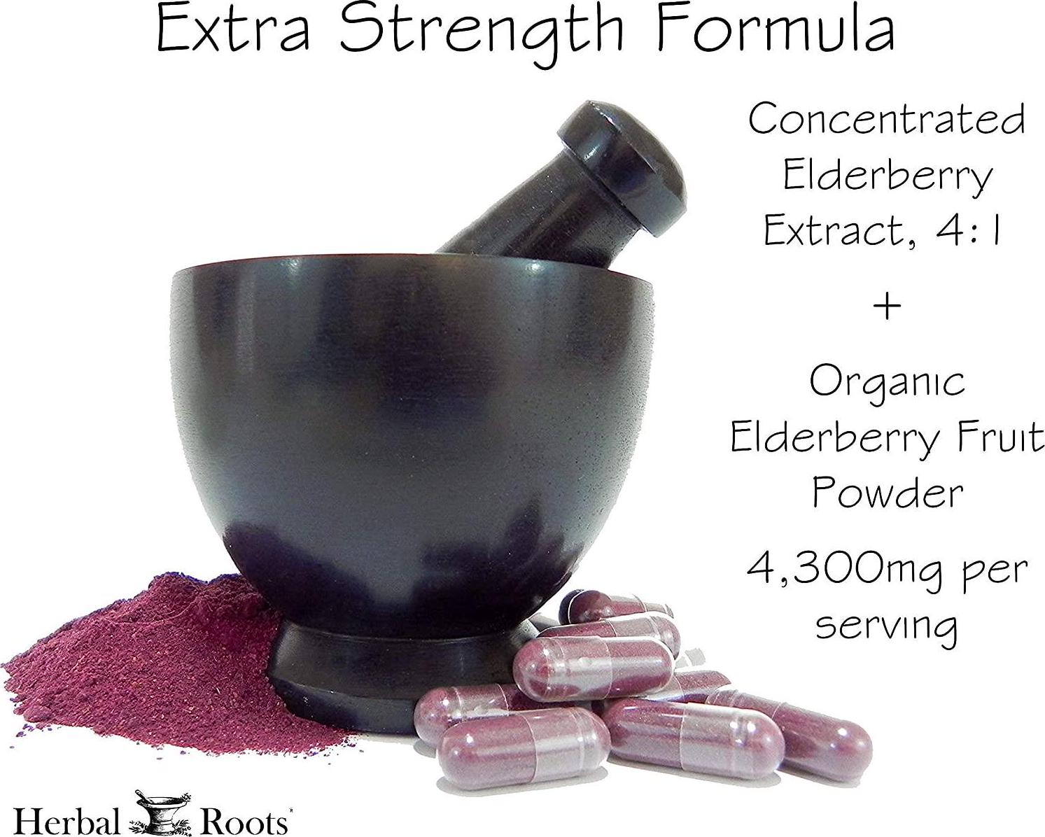 - POWERFUL- 4:1 concentrated elderberry extract + organic elderberry powder; 4,300mg per serving