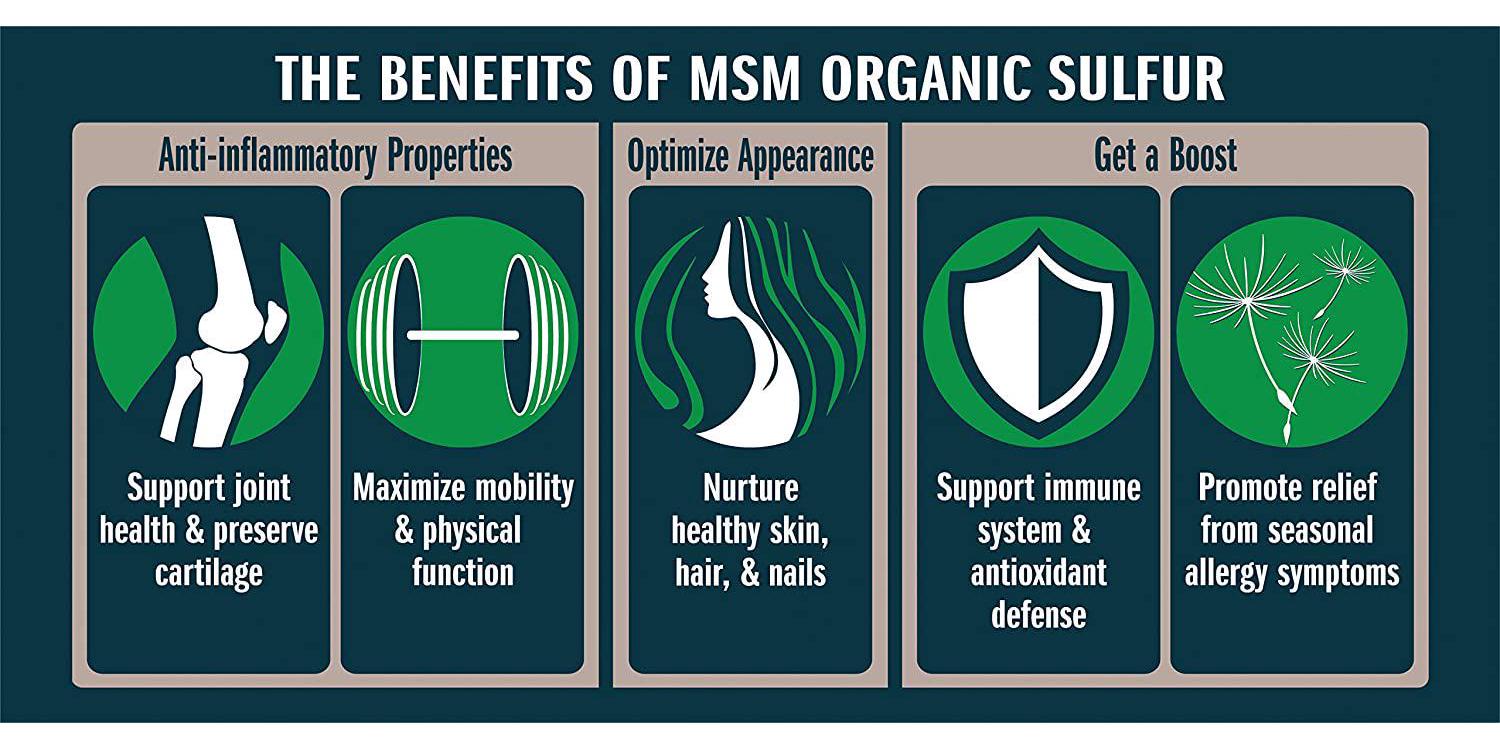 - IMPROVES OVERALL HEALTH: MSM sulfur is essential to maintaining healthy skin and complexion, and can improve flexibility, hair and nail health, and detoxifies the body. If you're looking to naturally increase your energy, relieve joint pain and improve your overall health, our organic sulfur crystals may be the solution!