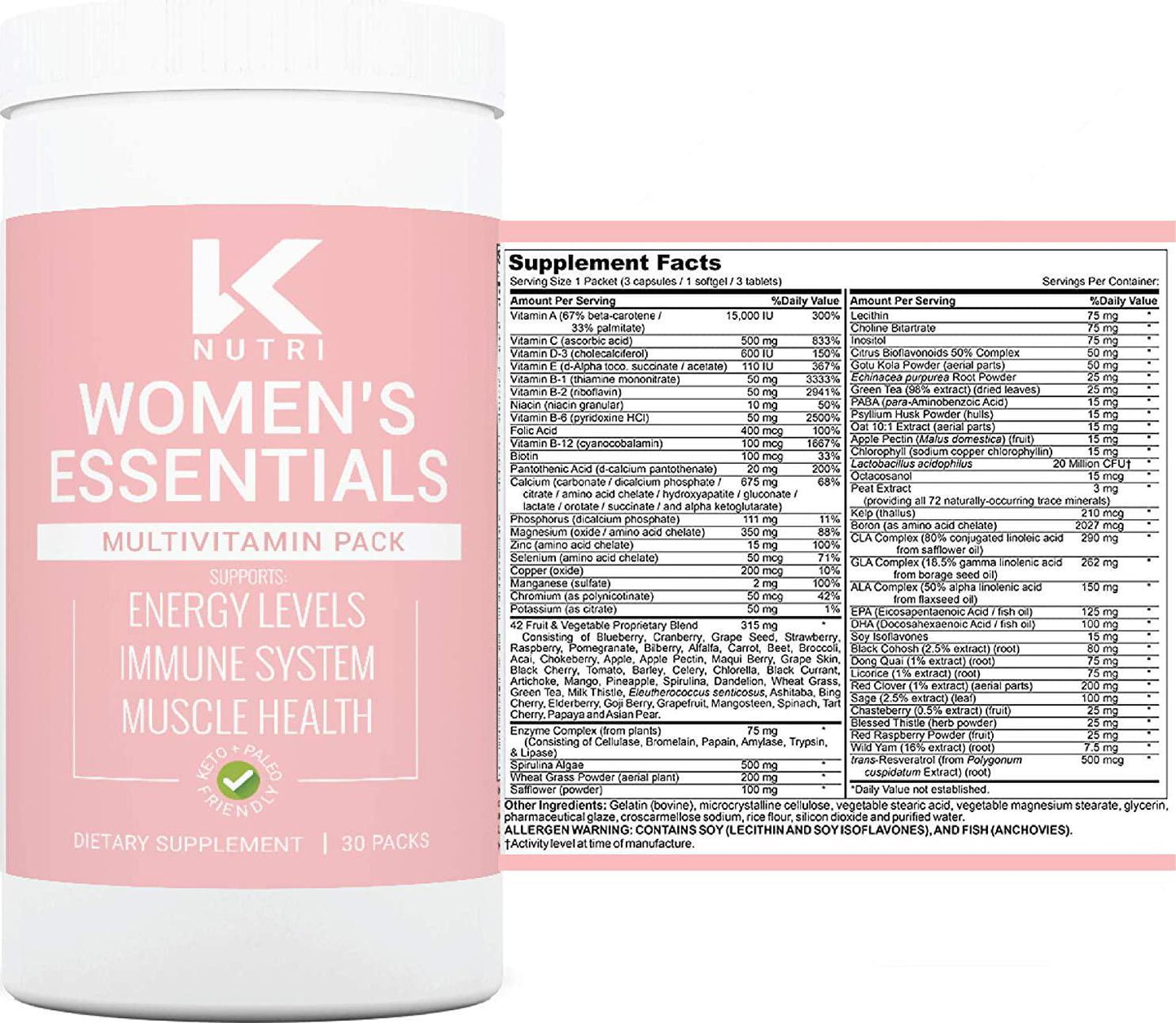 Multivitamin for Women - 30 Packs with Whole Food Energy Vitamins, Immune Support, Bone Strength Supplement, and Hair Skin Nails - Keto Friendly - K Nutri