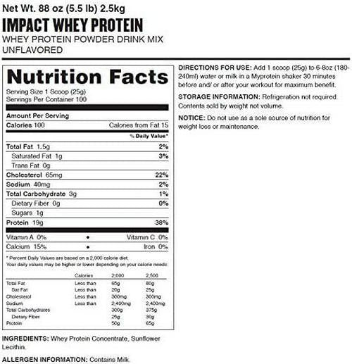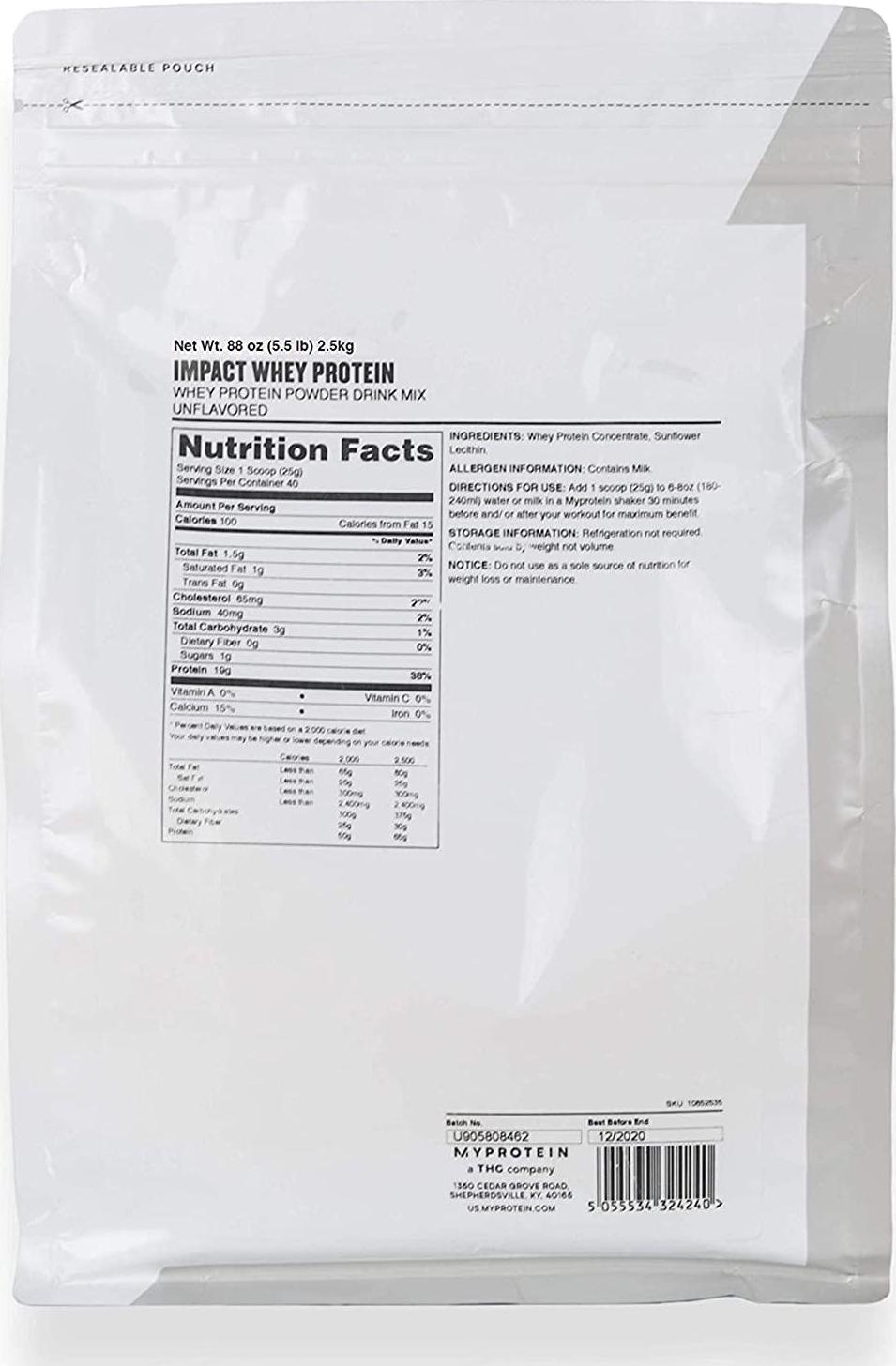 100 servings, 5.5 lb, impact whey, myprotein, protein powder, unflavored, usa