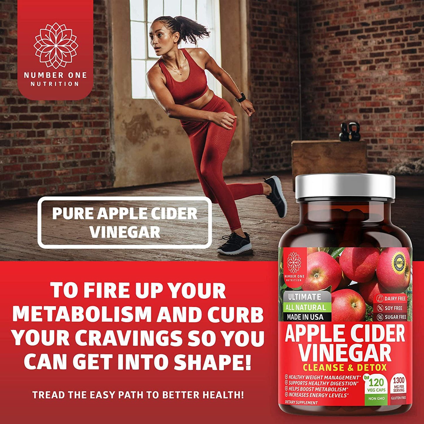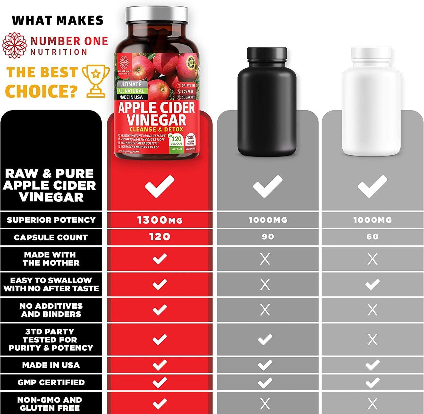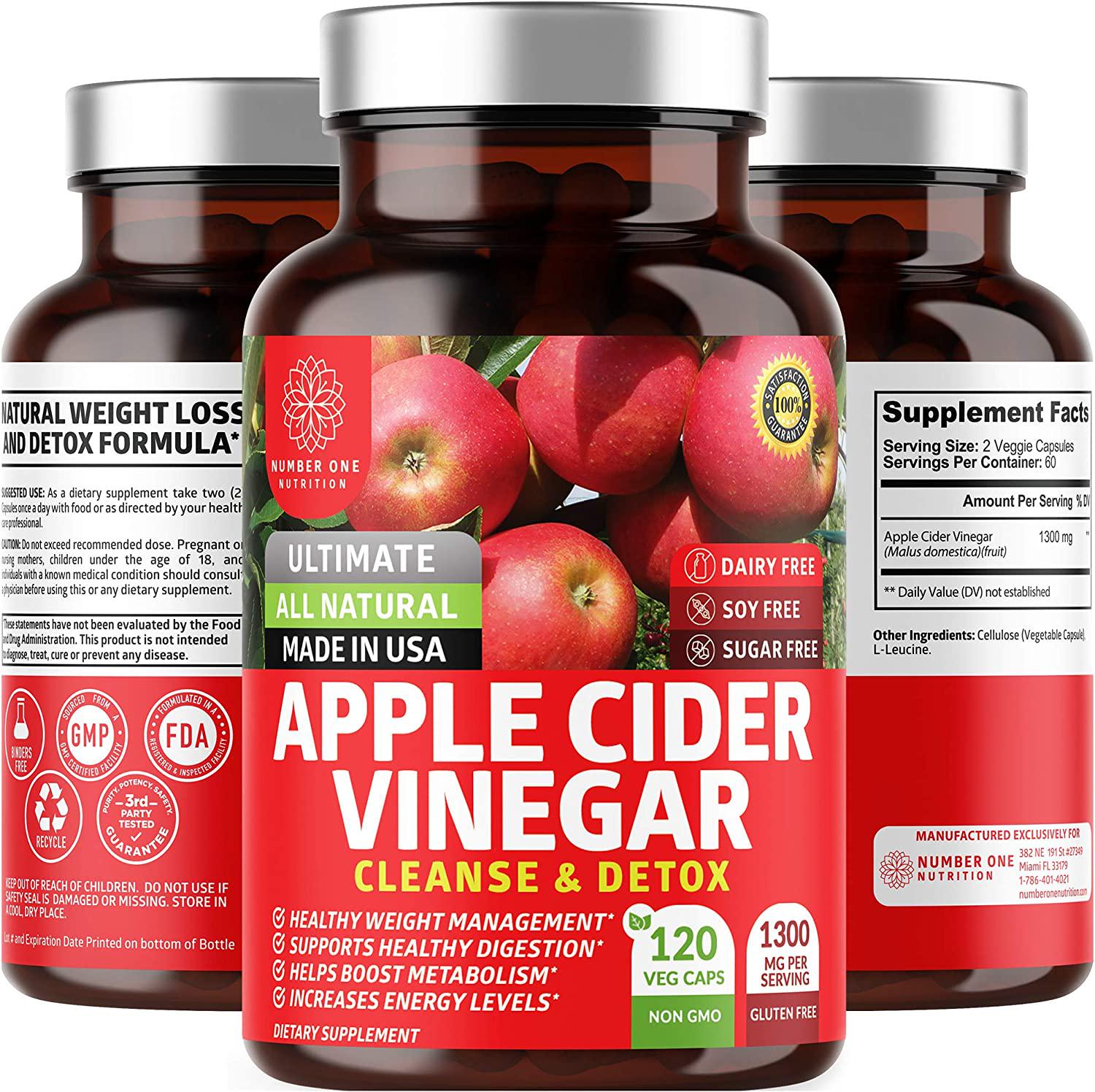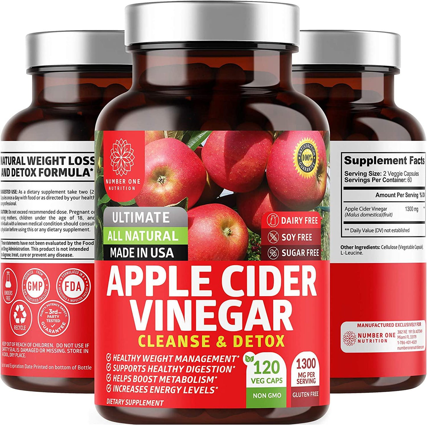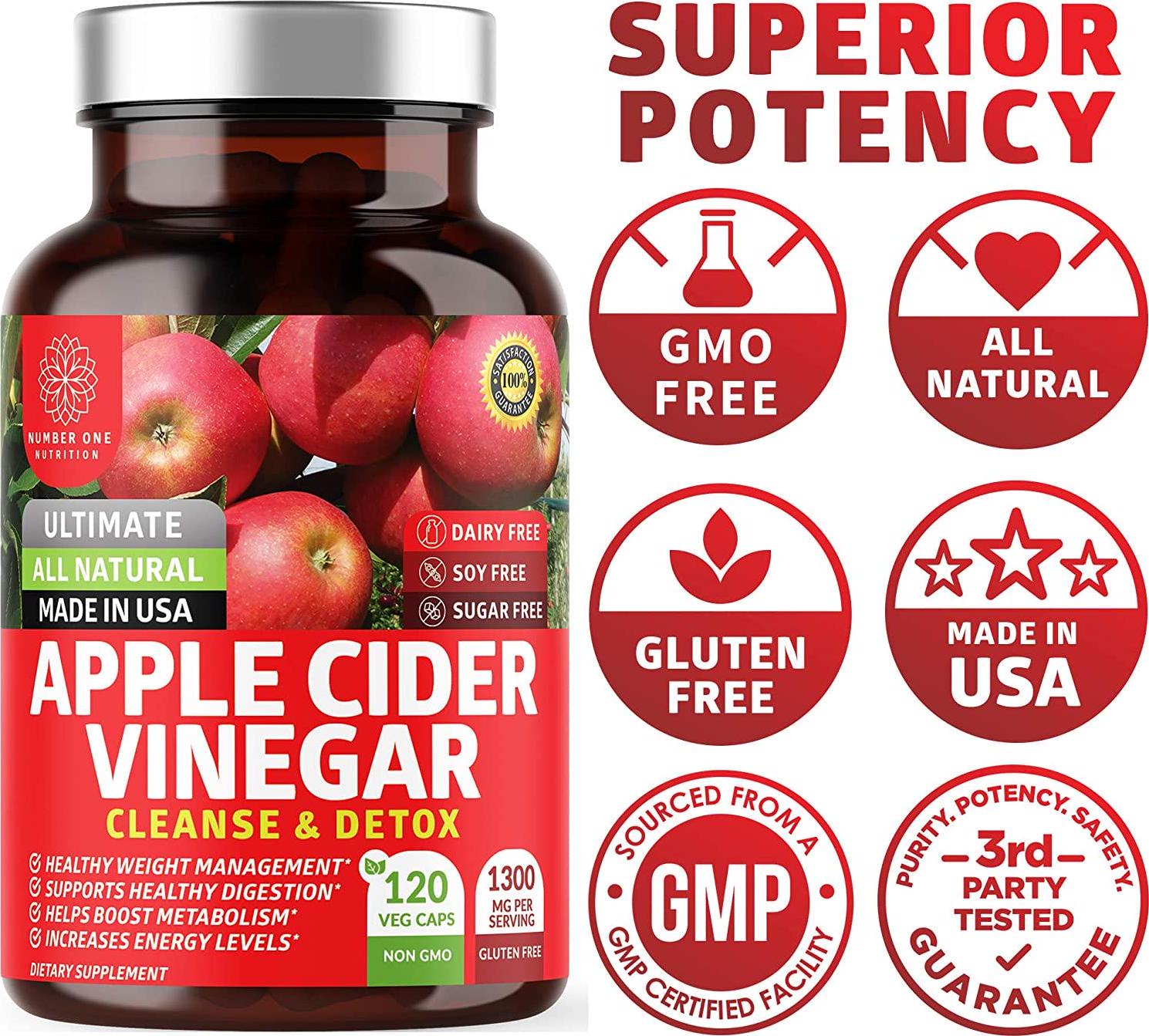 N1N Premium Apple Cider Vinegar Capsules [Max Strength, 1300mg] Raw and Unfiltered ACV Capsules for Digestion, Detox, Cleanse and Energy Support, Gluten Free, 120 Veg Caps