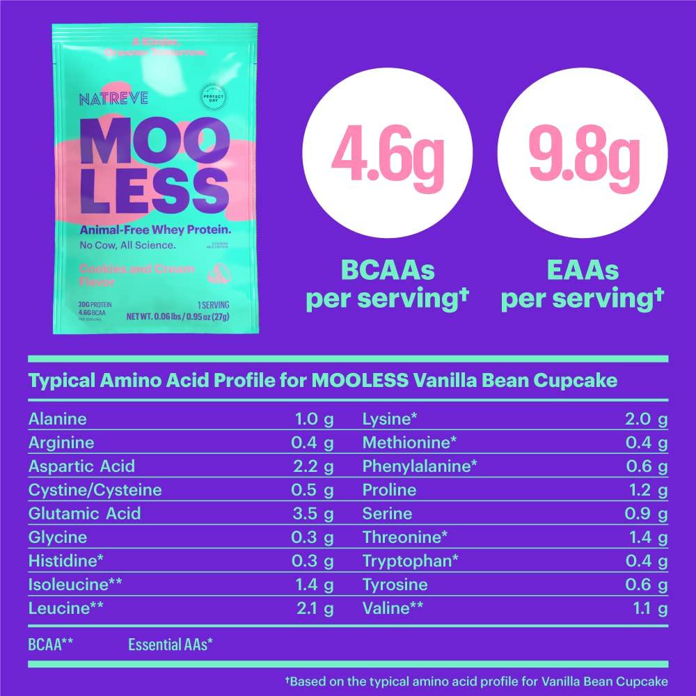 amino acids, animal free whey protein, cookies and cream, lactose free protein powder, mooless, natreve