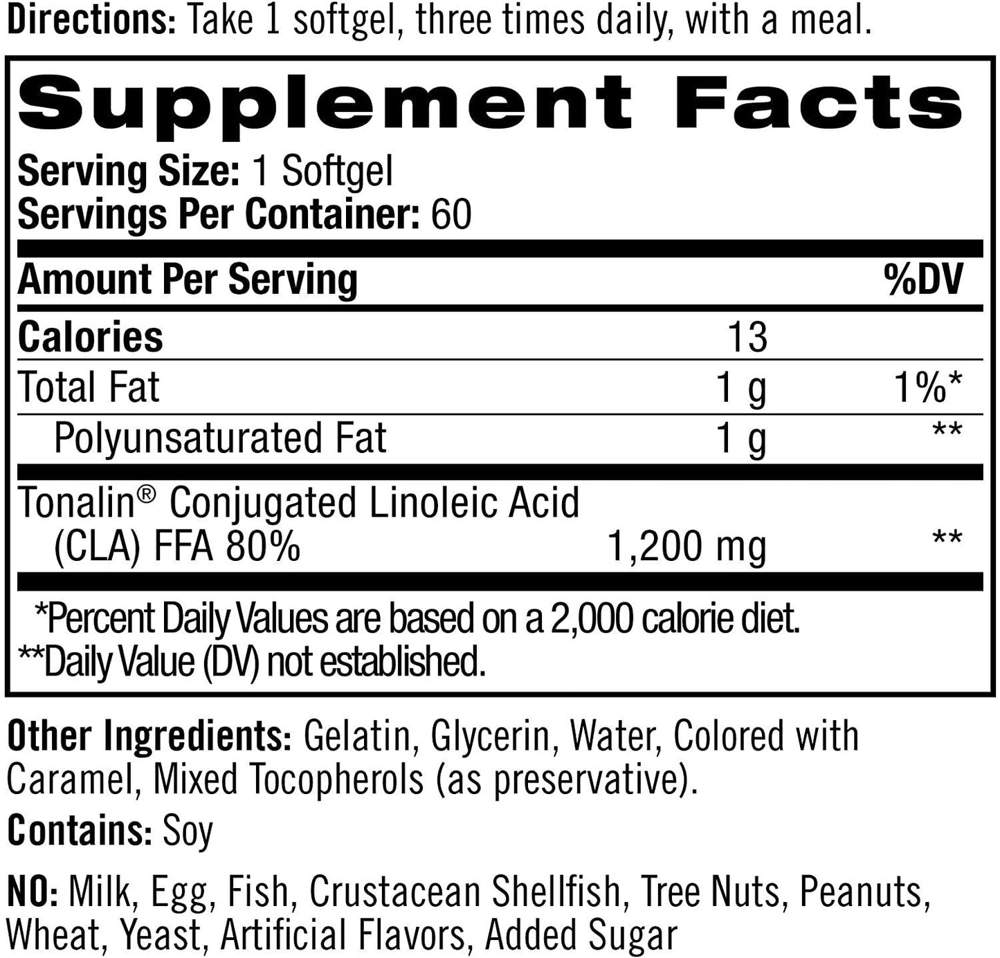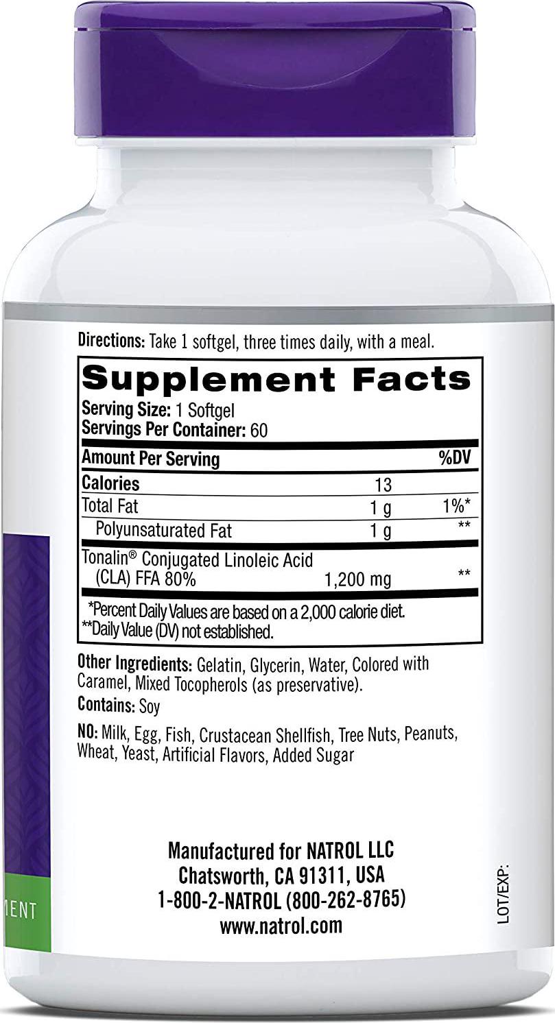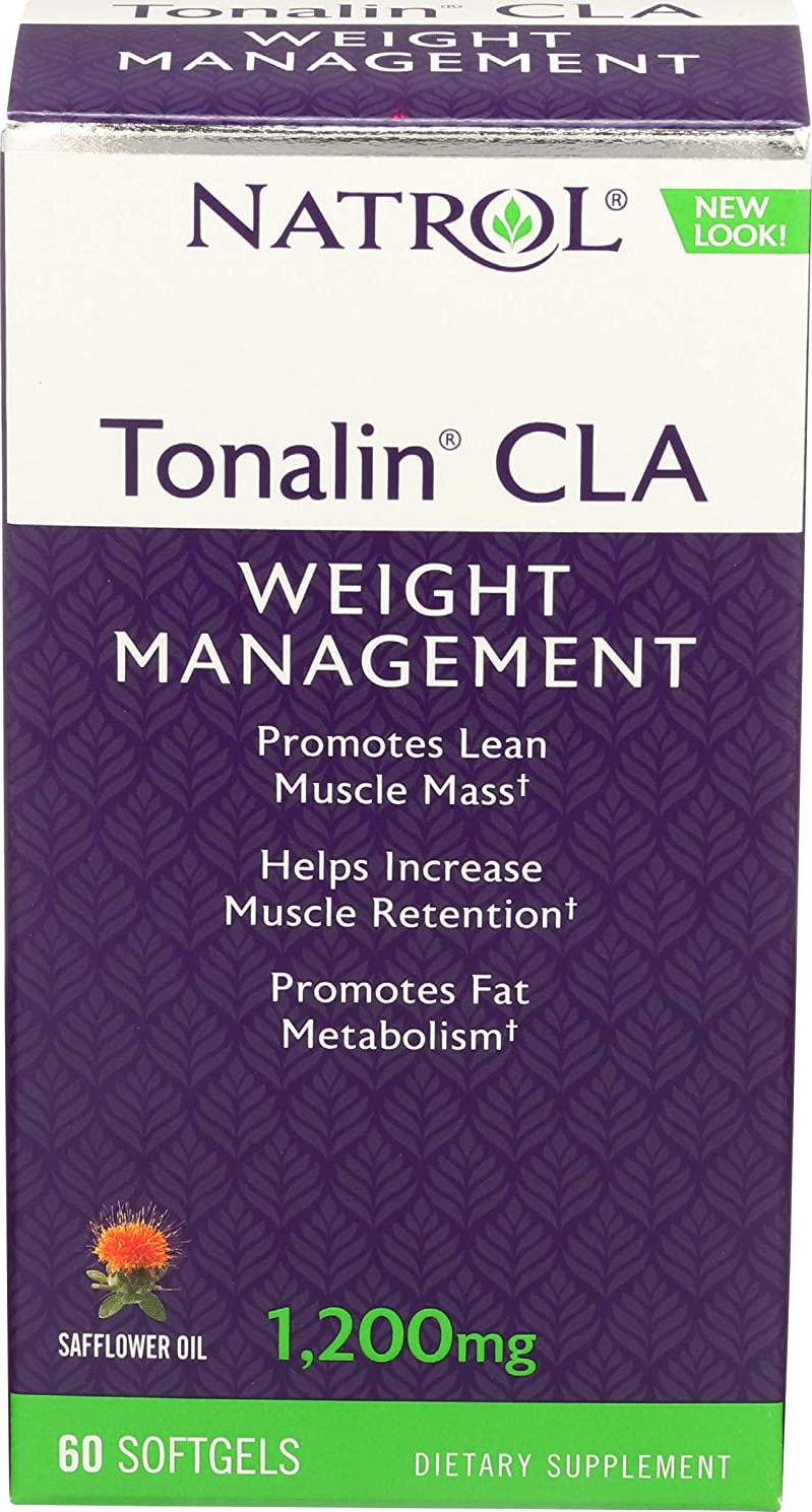 Natrol Tonalin CLA Softgels, Derived from Safflower Plant, Promotes Lean Muscle Mass, Helps Increase Muscle Retention, Promotes Fat Metabolism, Weight Management Supplement, 1,200mg, 60 Count