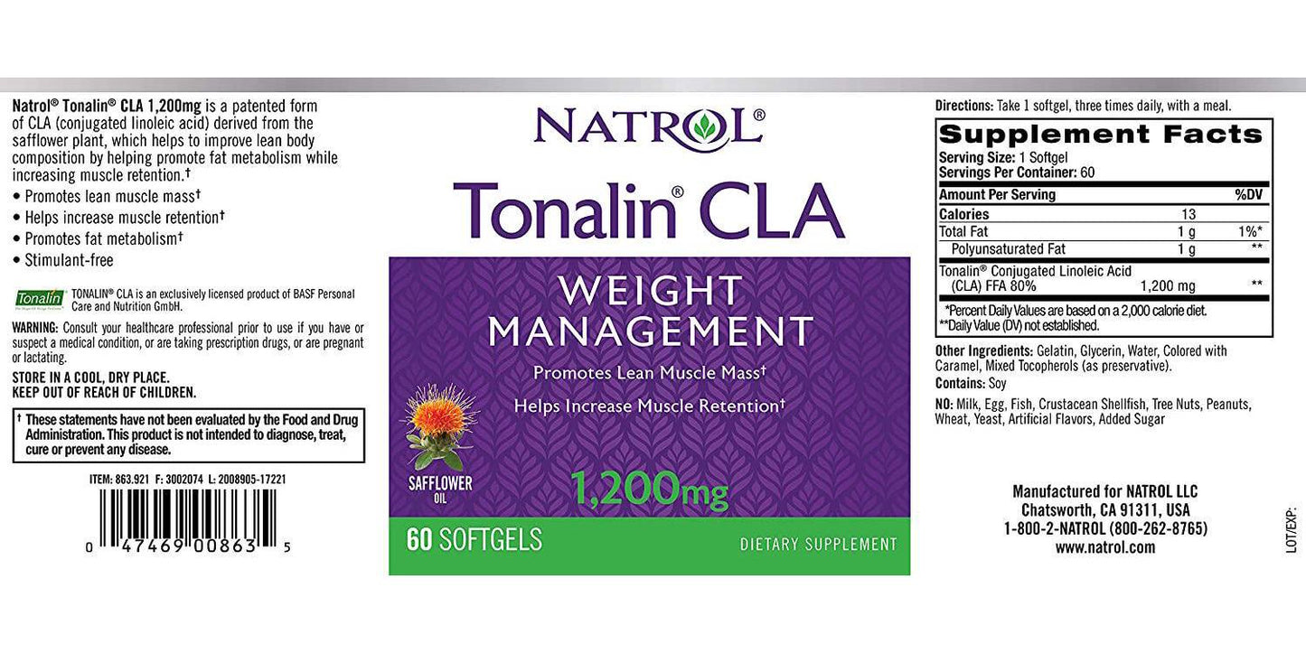 Natrol Tonalin CLA is a patented form of Conjugated Linoleic Acid (CLA), derived from the safflower plant, a vegetarian source of linoleic acid. Studies from human clinical trials show that Tonalin CLA affects the activity of key enzymes involved in the storage of fat in fat cells, while also decreasing the number and size of fat cells, which helps improve lean body composition.*