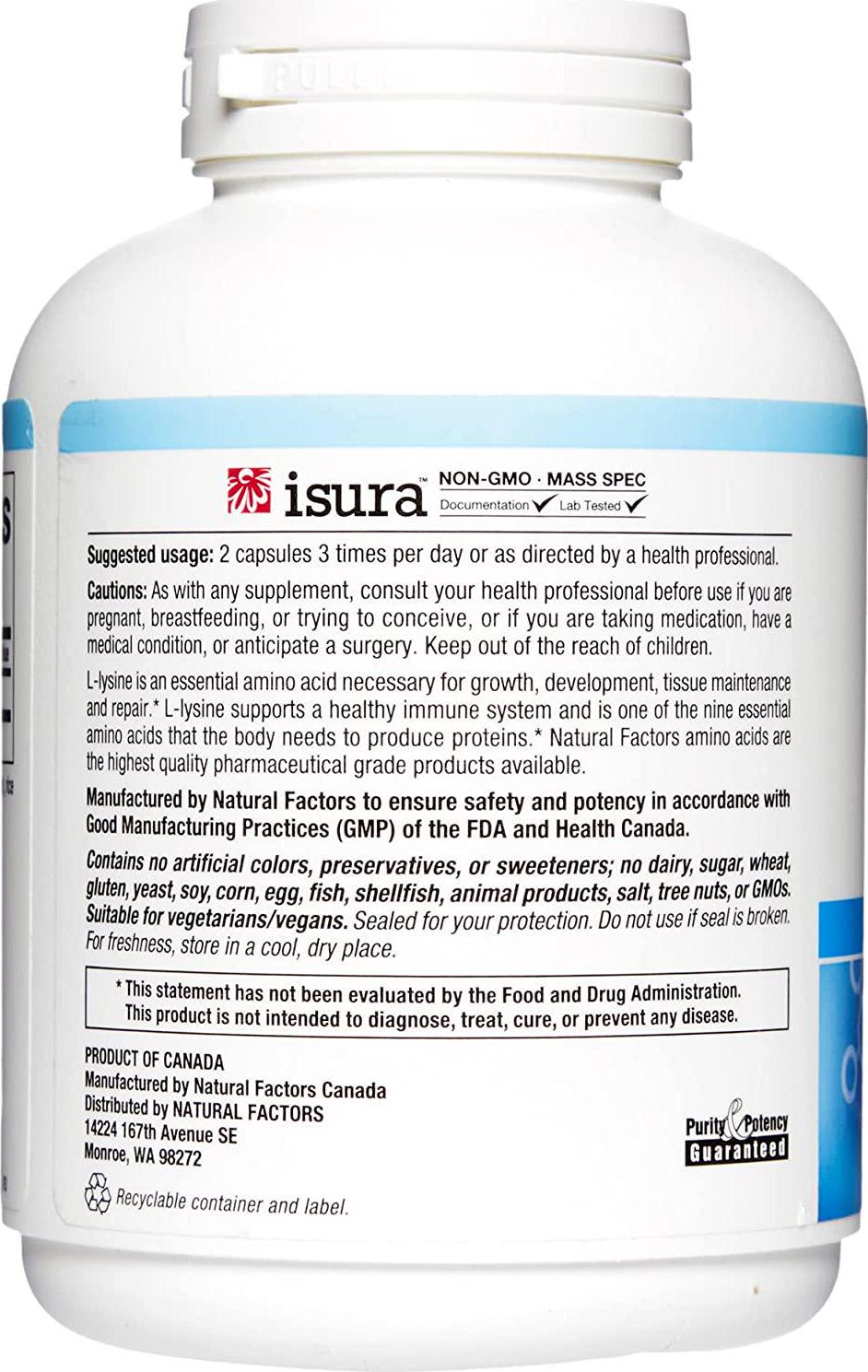 Natural Factors - L-Lysine, Supports Healthy Immune System Function, 180 Vegetarian Capsules
