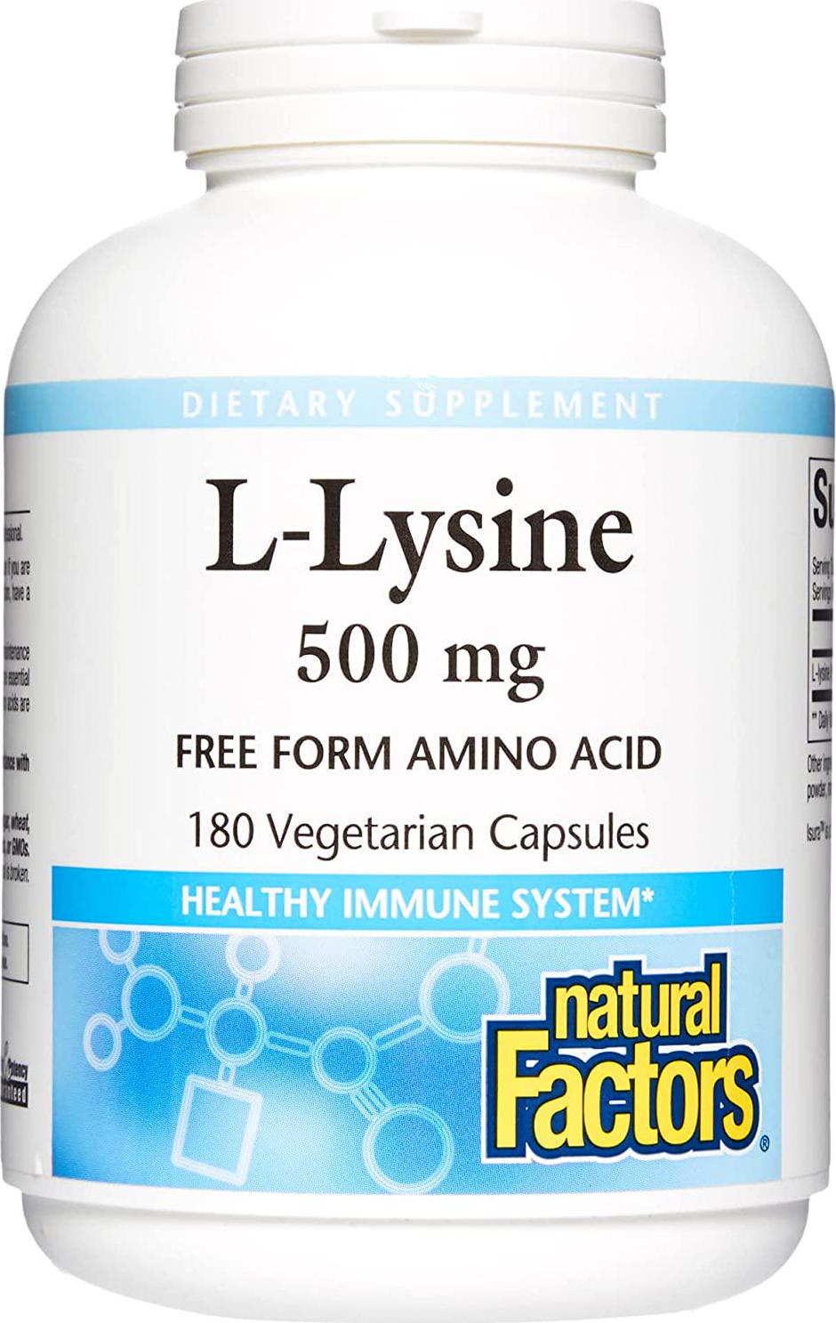 180 vegetarian capsules, healthy immune system, l-lysine 500mg, natural factors, supports, usa