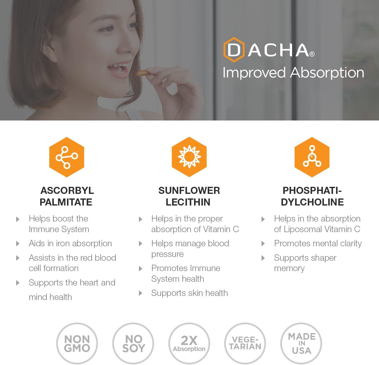 - Are you trying to boost your immune system? to rejuvenate your skin and experience the energy of an 18-year-old again? Then you’ll love how dacha liposomal vitamin c leverages the power of extreme powerful absorbing liposomal technology to quickly, easily & naturally help you bolster your immune system and feel stronger. Made in the usa, this product contains only top-notch raw materials that will help you achieve the best, flawless and the most effective results.