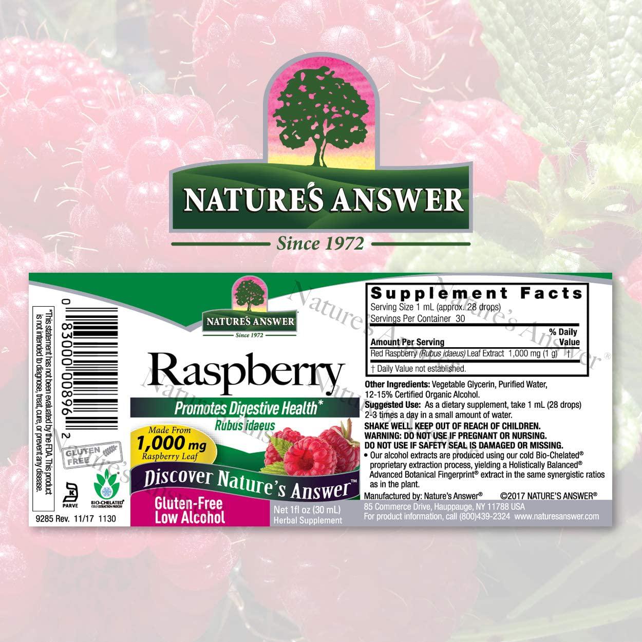 - Nature's ANswer Raspberry Leaf 1 Fluid Ounce, is made with Organic Low Alcohol, is Gluten FREE, and NEVER Tested on Animals