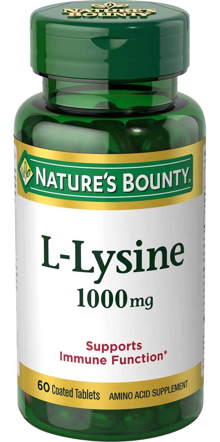 1000mg tablets, immune support, l-lysine, nature's bounty, skin & lips, usa, vegetarians