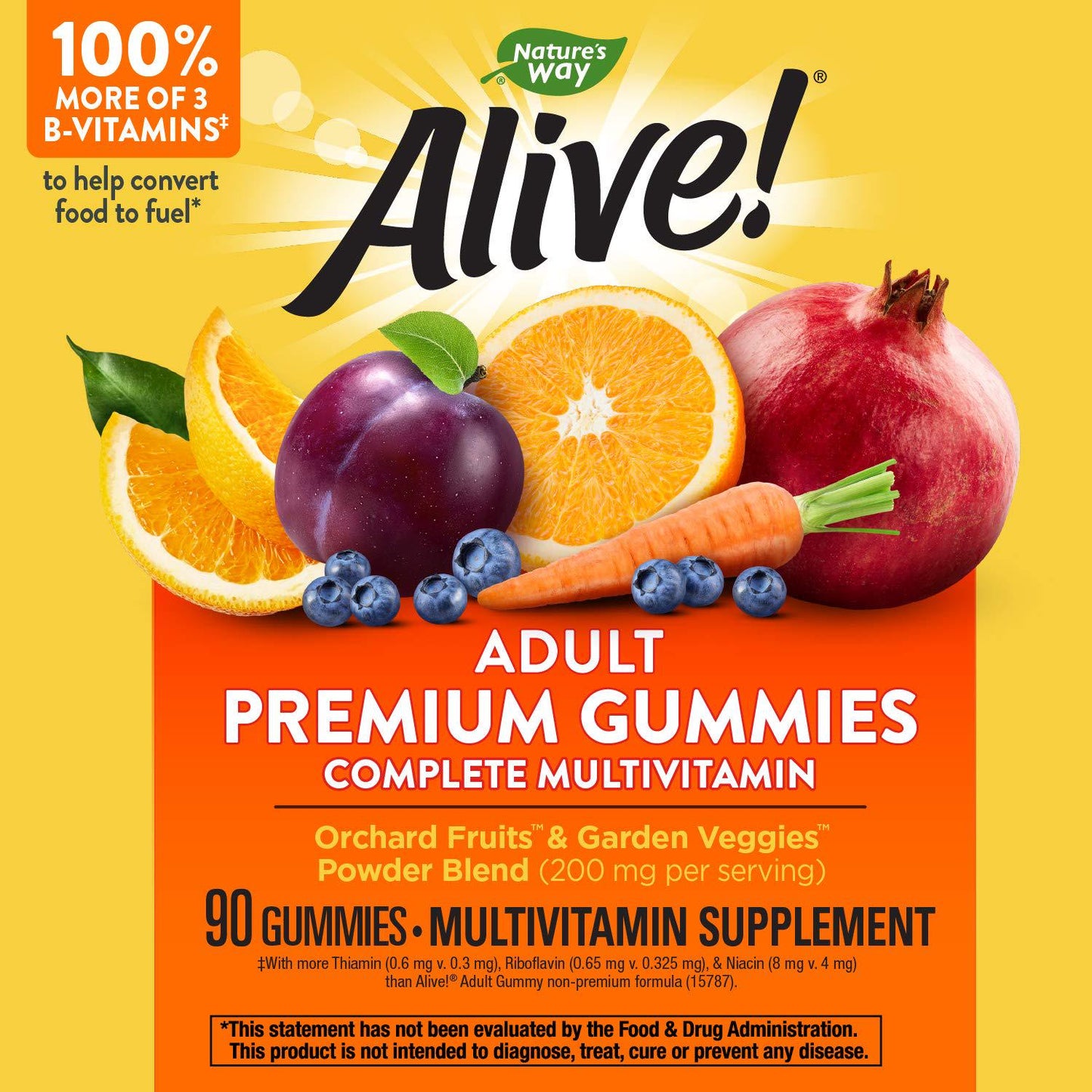 Nature's Way Alive! Adult Premium Gummy Multivitamin, Full B Vitamin Complex, 90 Gummies