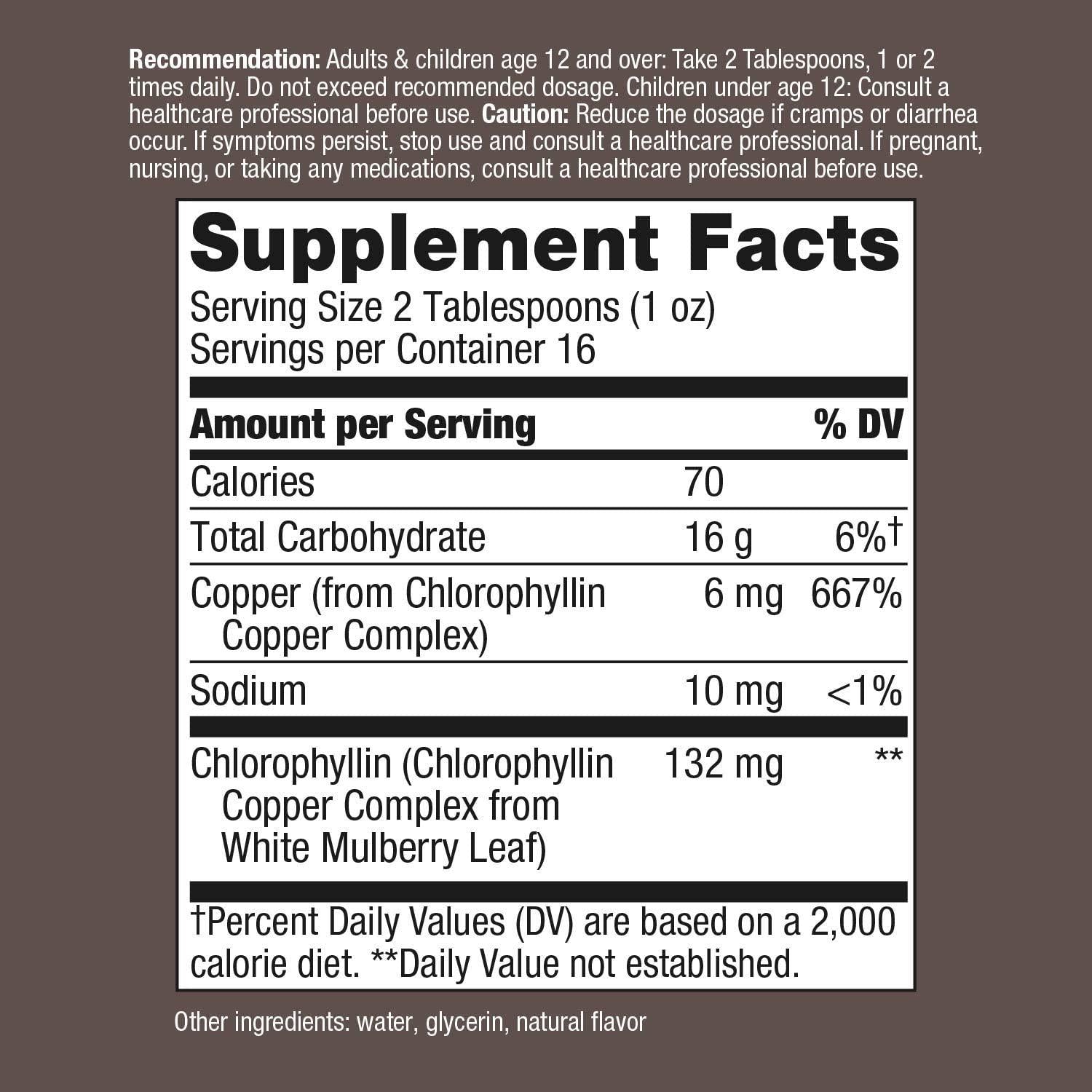 antioxidant, internal deodorant, mint flavor, mulberry tree leaves, nature's way chlorofresh liquid chlorophyll, vegetarian