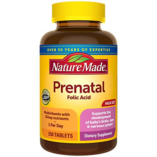 Nature Made Prenatal Multivitamin with Folic Acid, Dietary Supplement For Daily Nutritional Support, 250 Tablets, 250 Day Supply