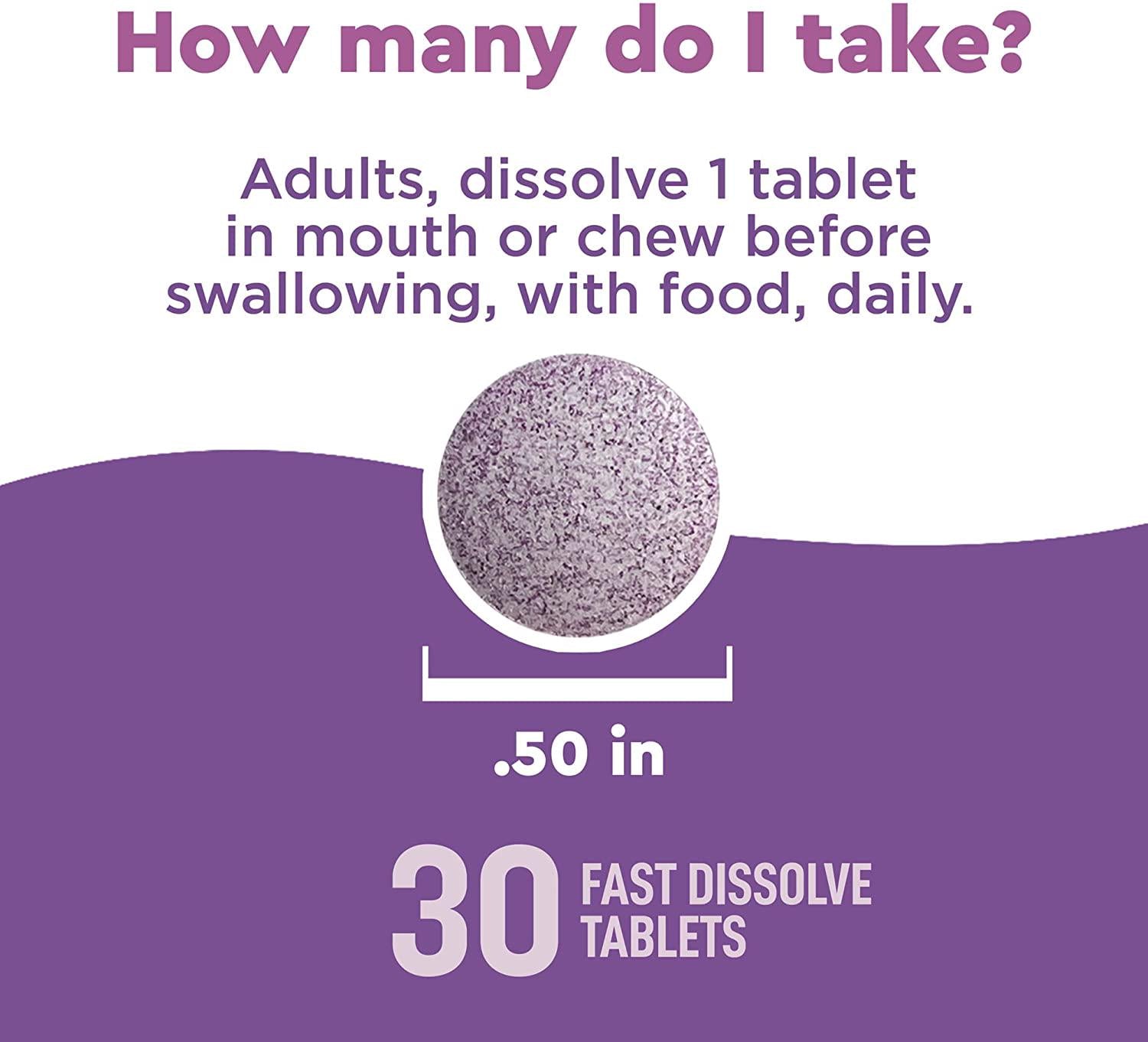 - FAST-DISSOLVE TABLET, DELICIOUS ELDERBERRY FLAVOR: Adults dissolve 1 tablet in mouth or chew before swallowing, with food, daily; gluten-free, no artificial flavors, no synthetic dyes