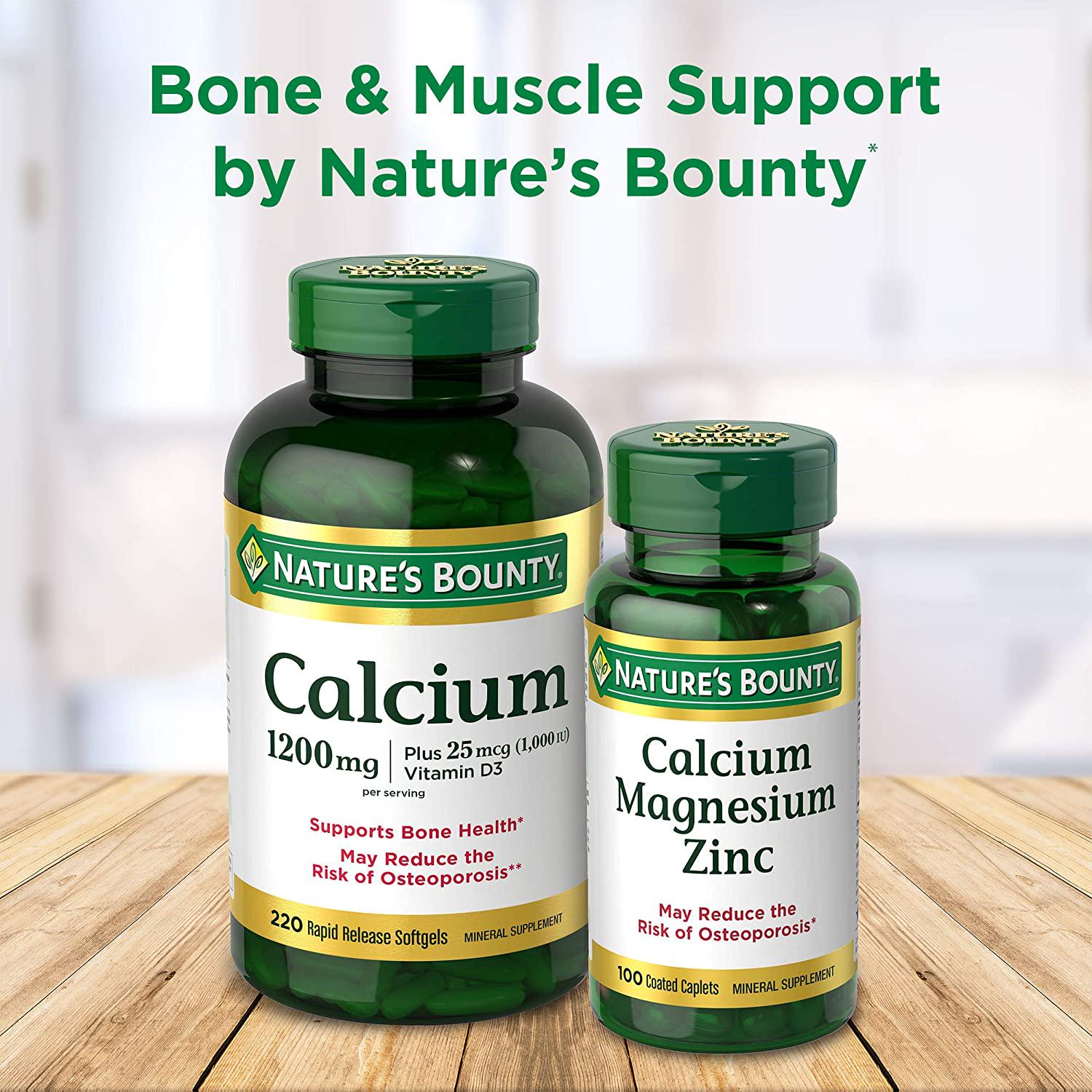 - Nature's Bounty Calcium Plus Vitamin D3 has 1200 mg of calcium, which helps maintain bone strength, support your immune system and help support neuromuscular health. Each softgel has 1000 IU of vitamin D3, which helps your body absorb calcium.