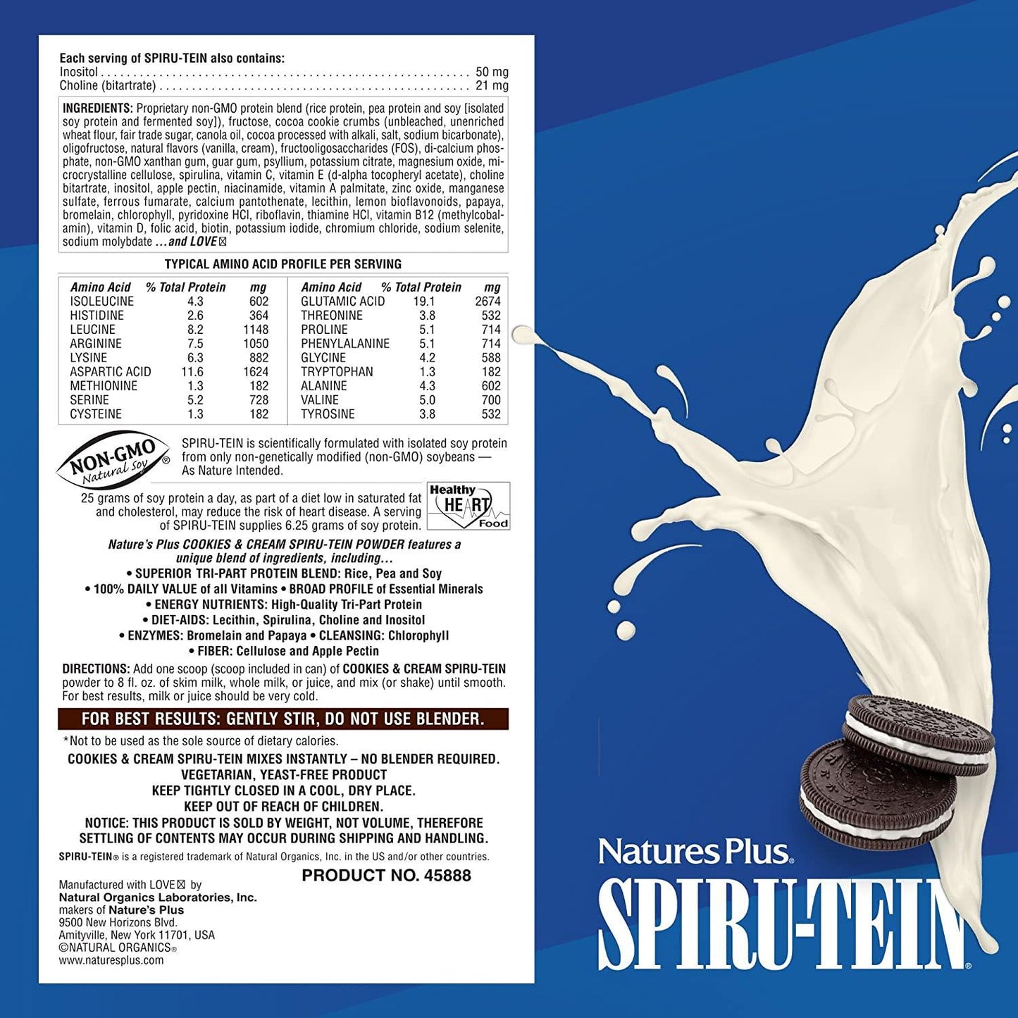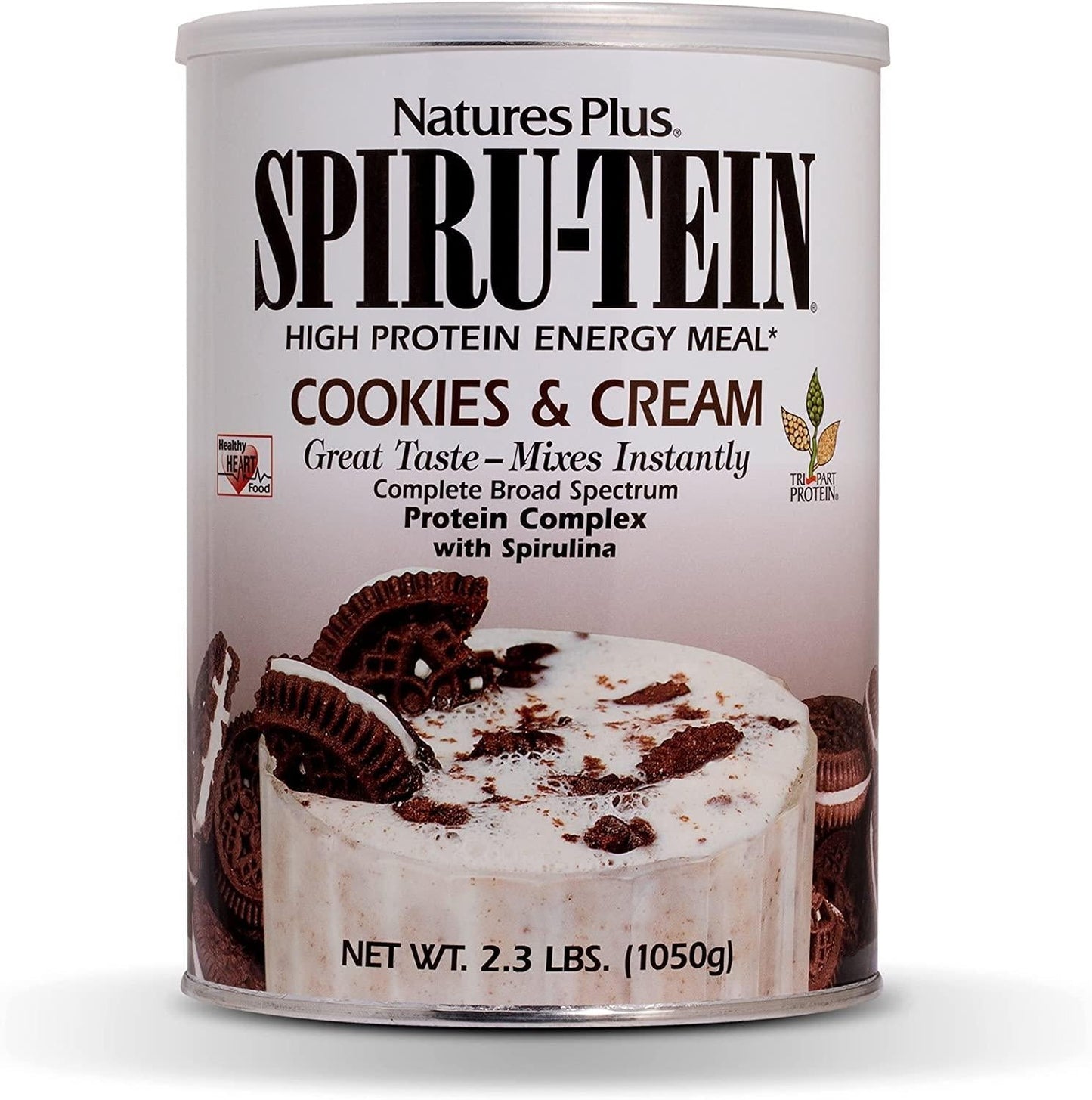 NaturesPlus SPIRU-TEIN Shake - Cookies and Cream - 2.3 lbs, Spirulina Protein Powder - Plant Based Meal Replacement, Vitamins and Minerals for Energy - Vegetarian - 30 Servings