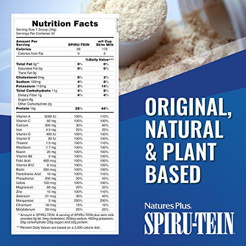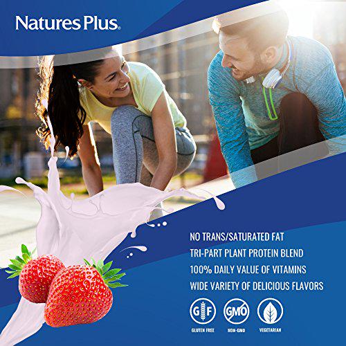 NaturesPlus SPIRU-TEIN Shake - Strawberry - 2.4 lbs, Spirulina Protein Powder - Plant Based Meal Replacement, Vitamins and Minerals for Energy - Vegetarian, Gluten-Free - 32 Servings