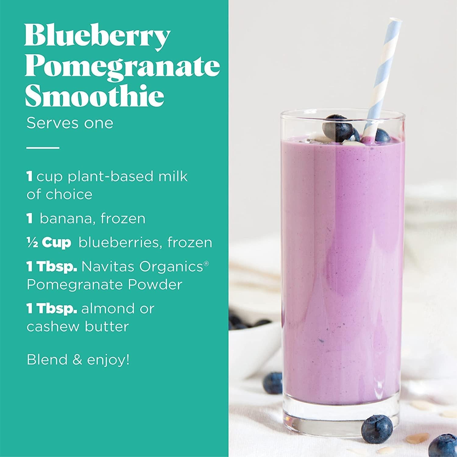 - Navitas Organics Pomegranate Powder has a bright, sweet taste that is fantastic in smoothies, yogurt, marinades, desserts, salad dressings and baked goods.