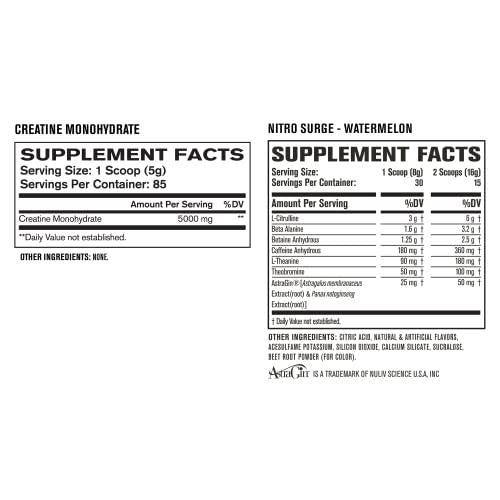 Nitrosurge Pre-Workout and Creatine Monohydrate - Pre Workout Powder with Creatine for Muscle Growth, Increased Strength, Endless Energy, Intense Pumps - Watermelon Preworkout and Unflavored Creatine