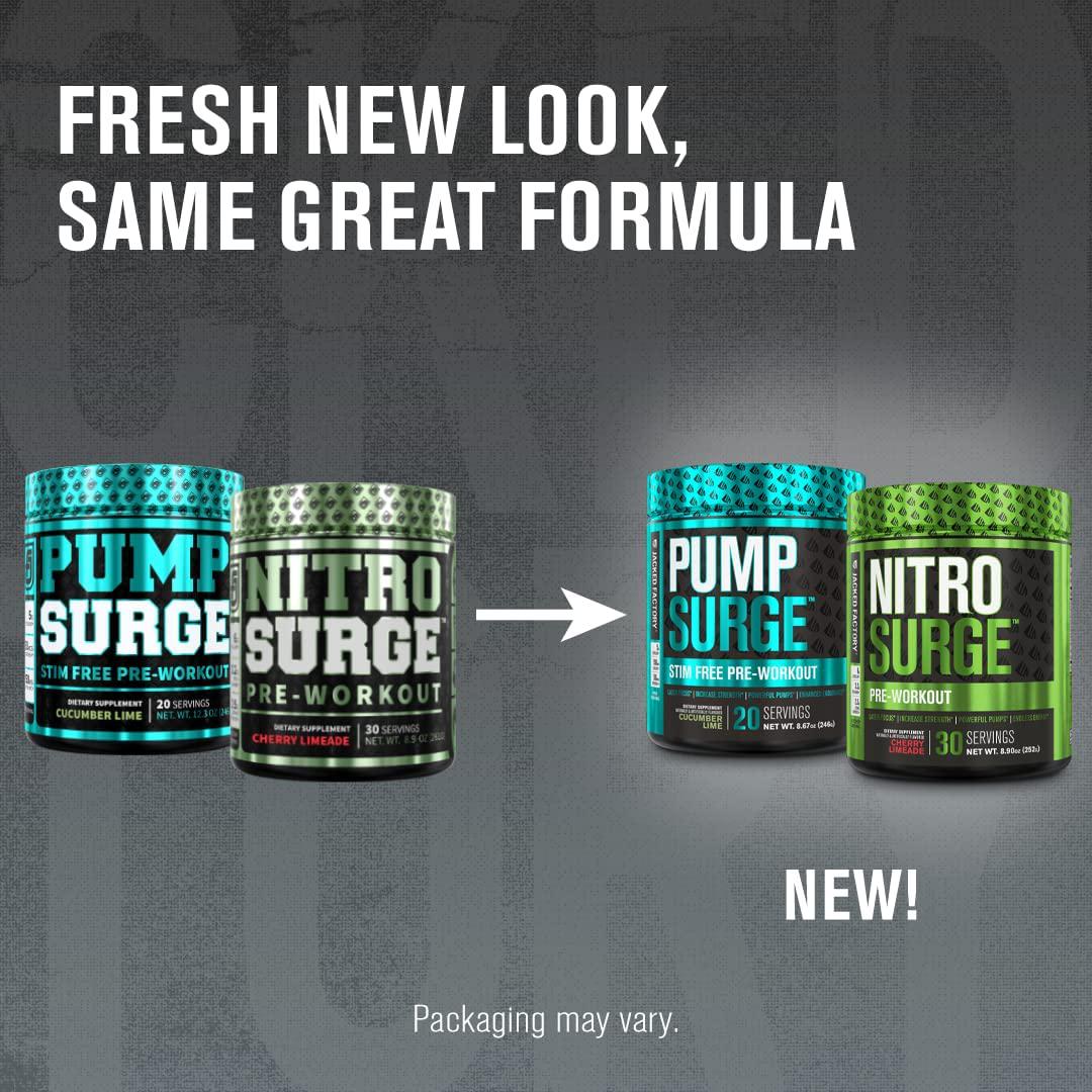 Nitrosurge Pre-Workout and Pumpsurge Caffeine-Free Pre-Workout - Morning and Night Bundle for Increased Focus, Stamina, Endless Energy and Powerful Pumps - Cherry Limeade and Cucumber Lime Flavor