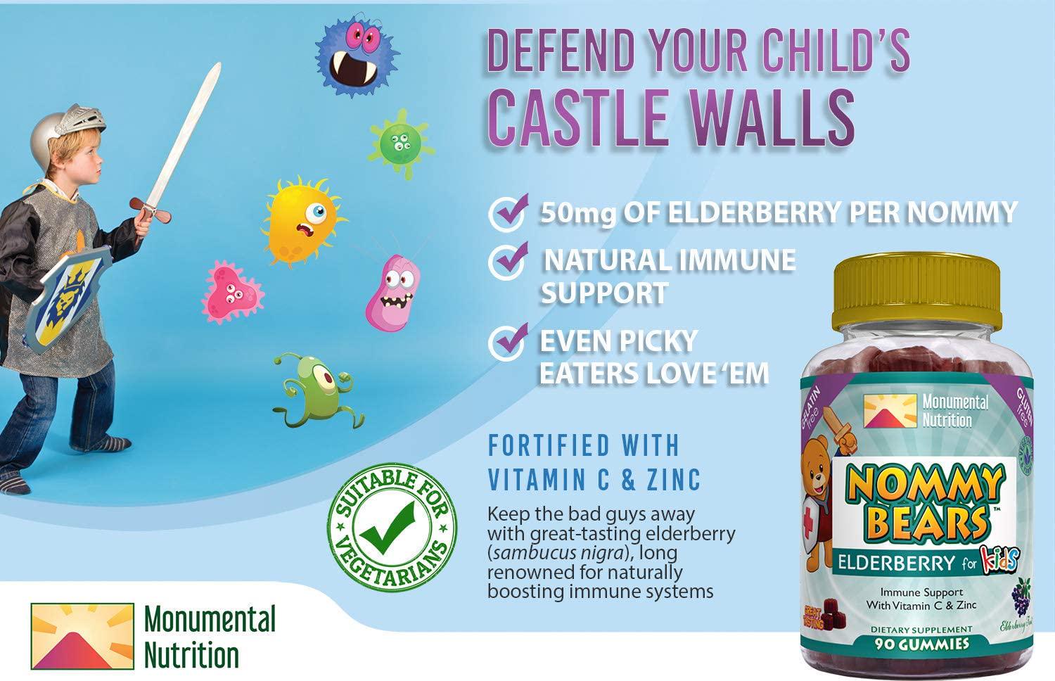 - GUMMY IMMUNE SUPPORT FOR EVERYONE: Not just for kids, Nommy Bears Elderberries are also great for men, women, teens, and adults of all ages. Kids and grown-ups a will love the RASPBERRY flavor, and benefits of Immunity boosts.