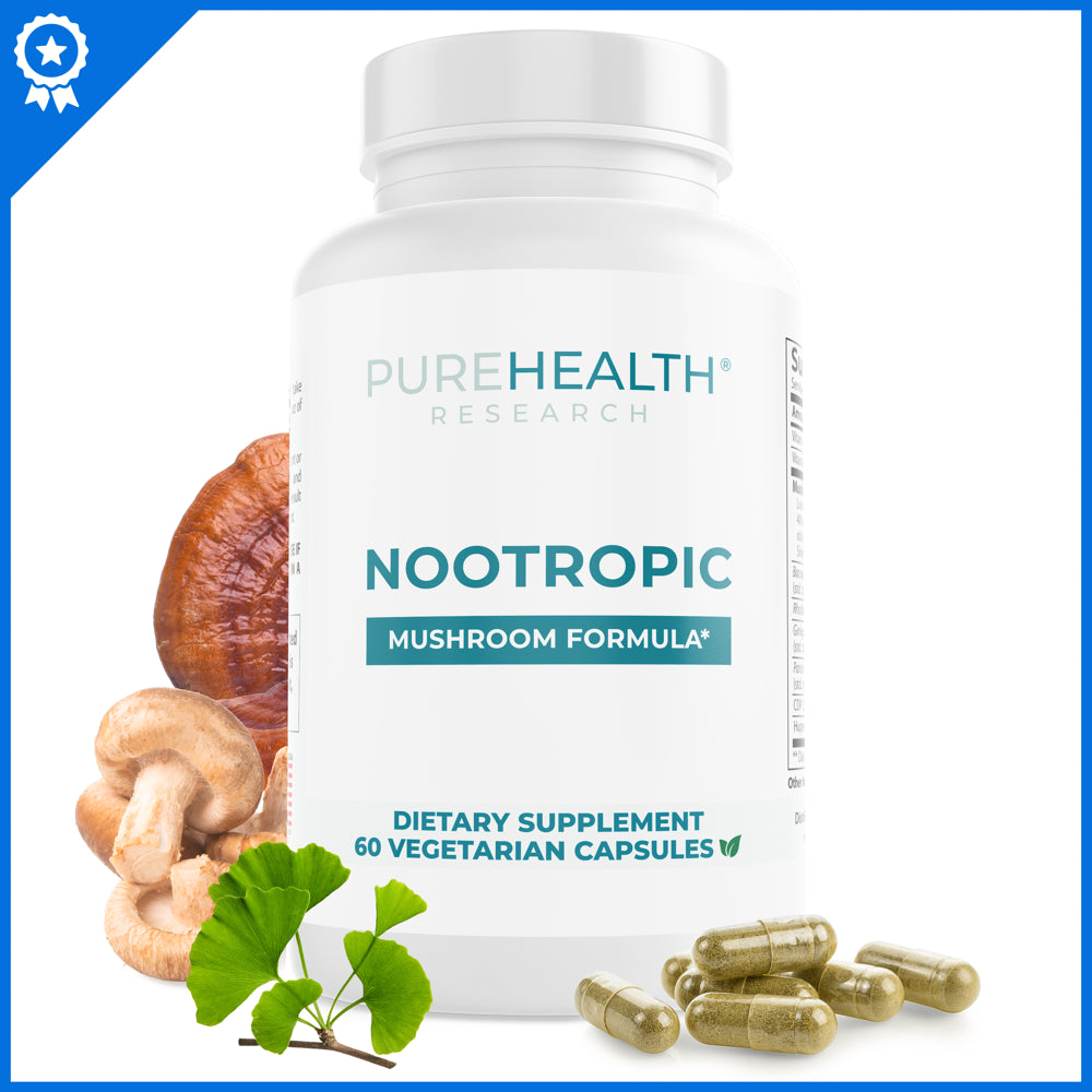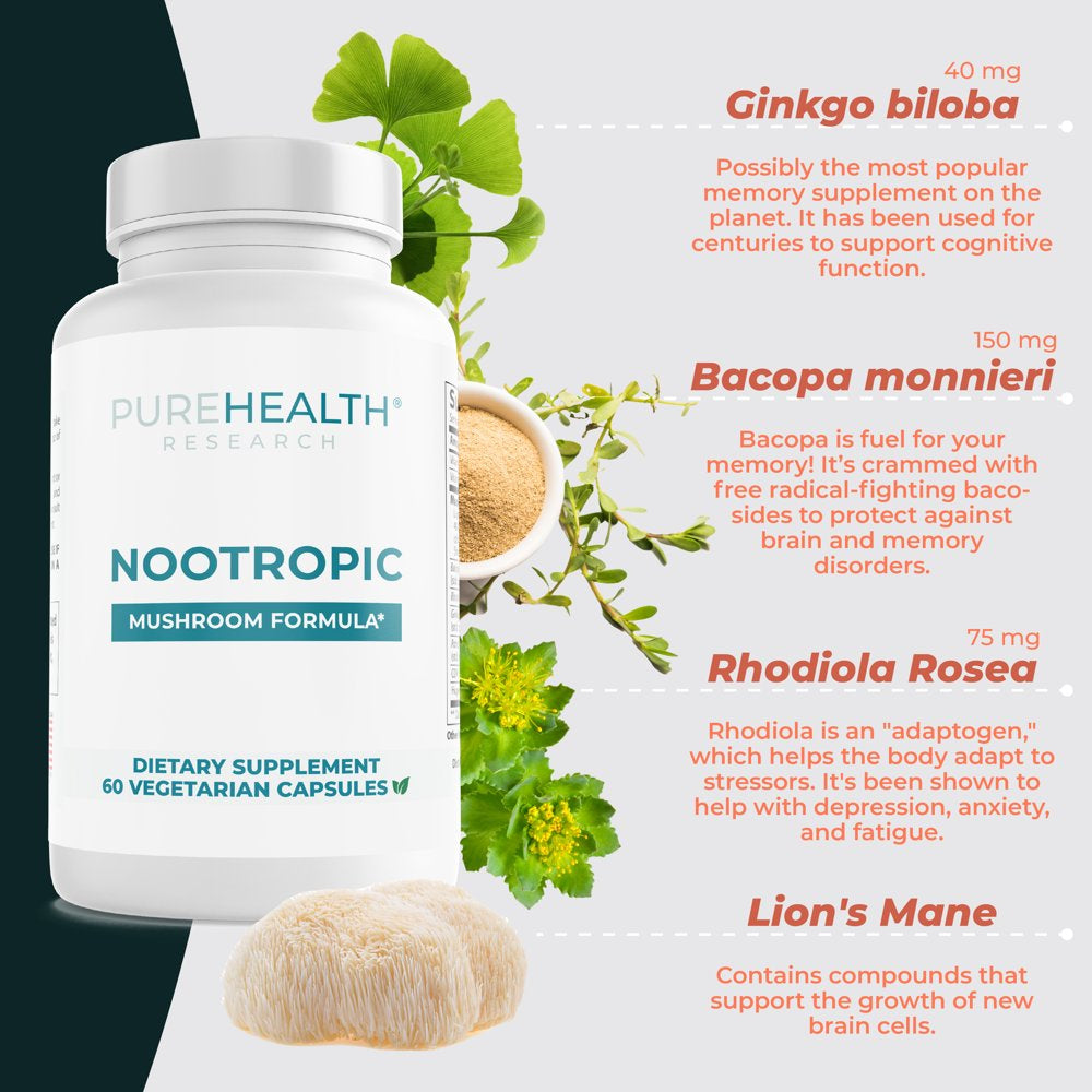 Nootropics Brain Support Supplement, Lions Mane, Shiitake, Chaga, Reishi Mushroom Powder - Enhance Memory and Improve Cognitive Health by Purehealth Research