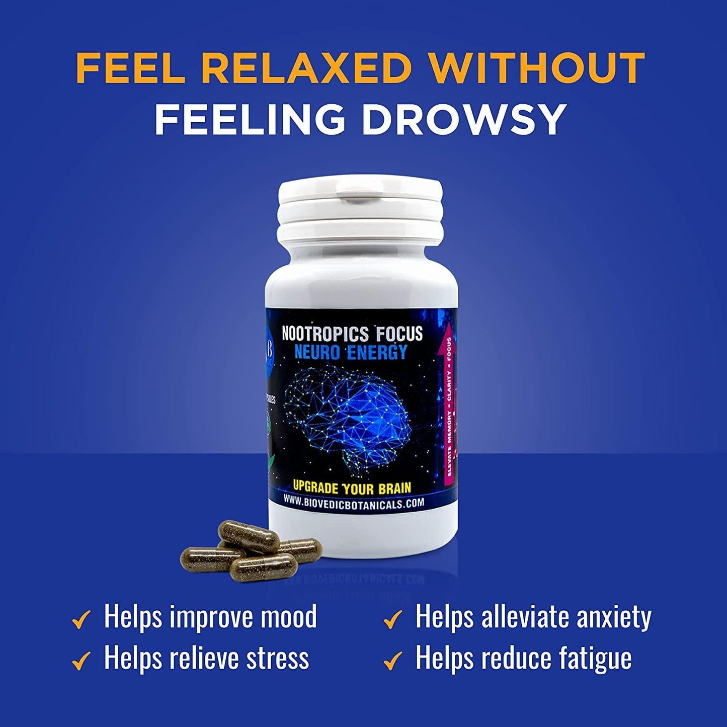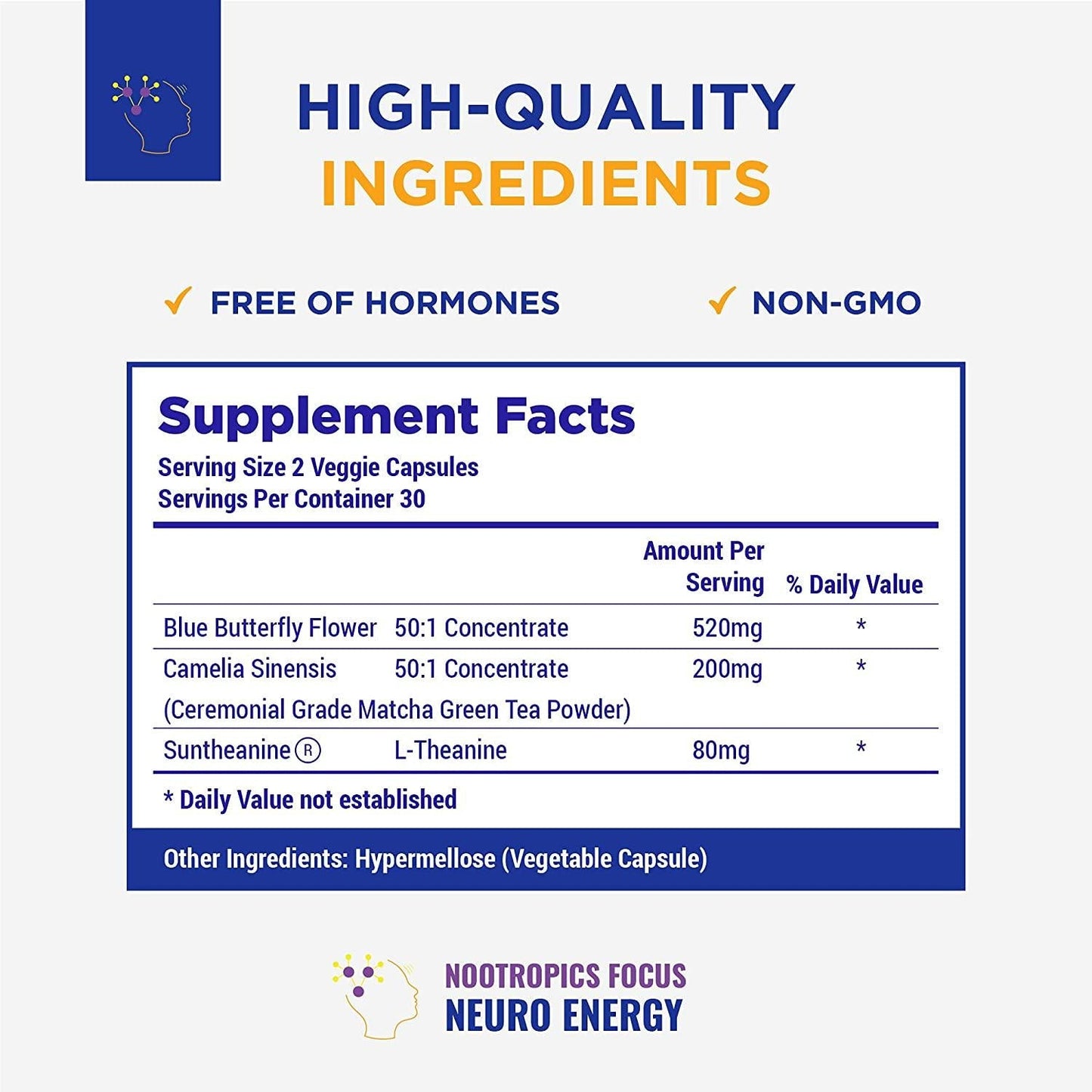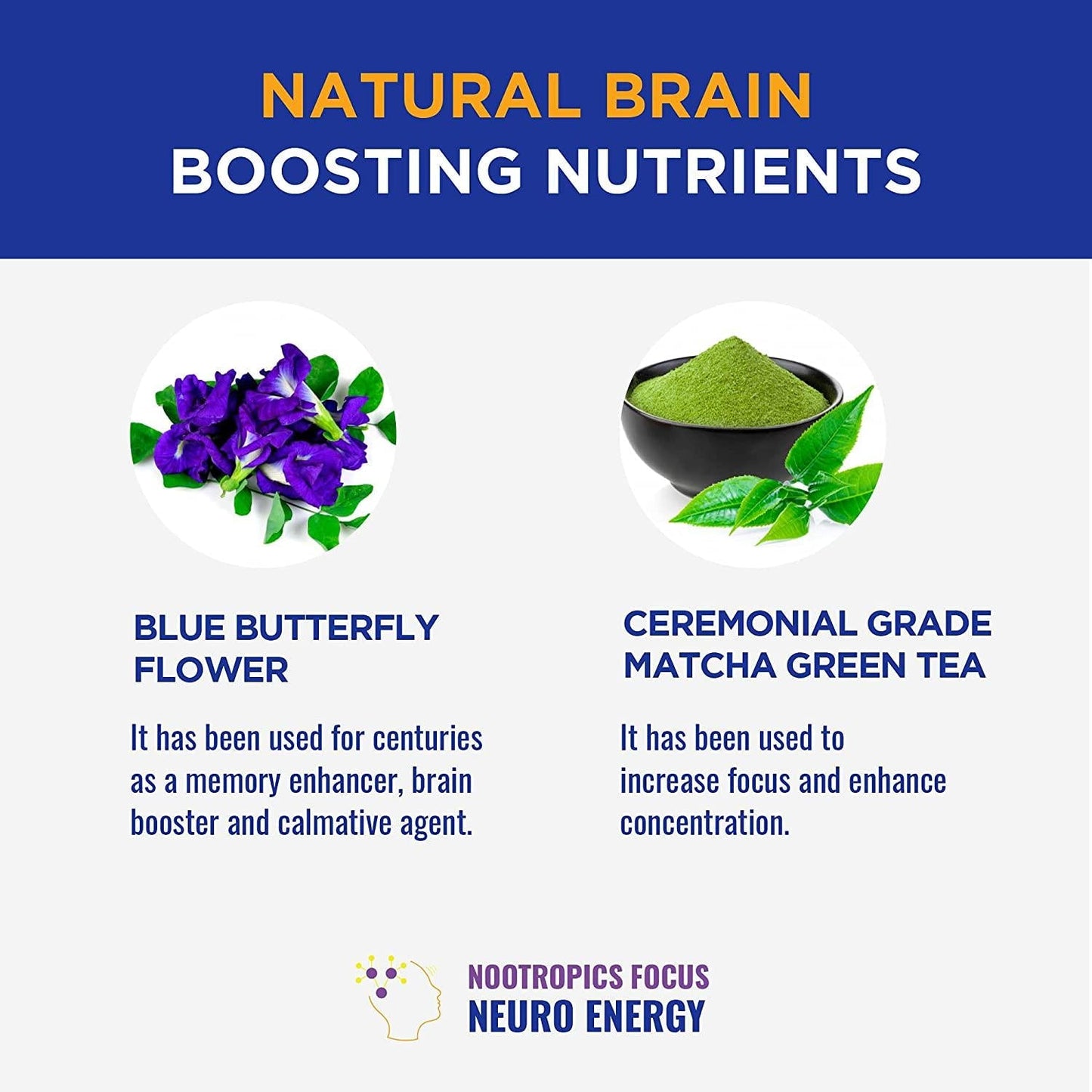 Nootropics Focus Neuro Energy Pills Brain Supplement - Enhance Focus, Boost Concentration, Improve Memory and Clarity – Ultimate 50:1 Matcha, Green Tea, L Theanine Natural Brain Booster – Awaken Genius