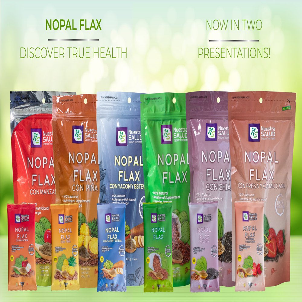 Nuestra Salud, Nopal Flax Linaza Plus Strawberry & Camu Camu Fiber Dietary Supplement Powder 454 g. Enriched with Body-Loving Nutrients. This isn't just any ground flaxseed powder. It's elevated with prickly pear cactus, wheat bran, strawberry and Camu Camu powder antioxidant rich ingredients that may help boost immunity with every serving. Helps Maintain a clean and healthy colon Promotes vitality and healthy lifestyle Fiber rich Flaxseed Omega 3,6,9
