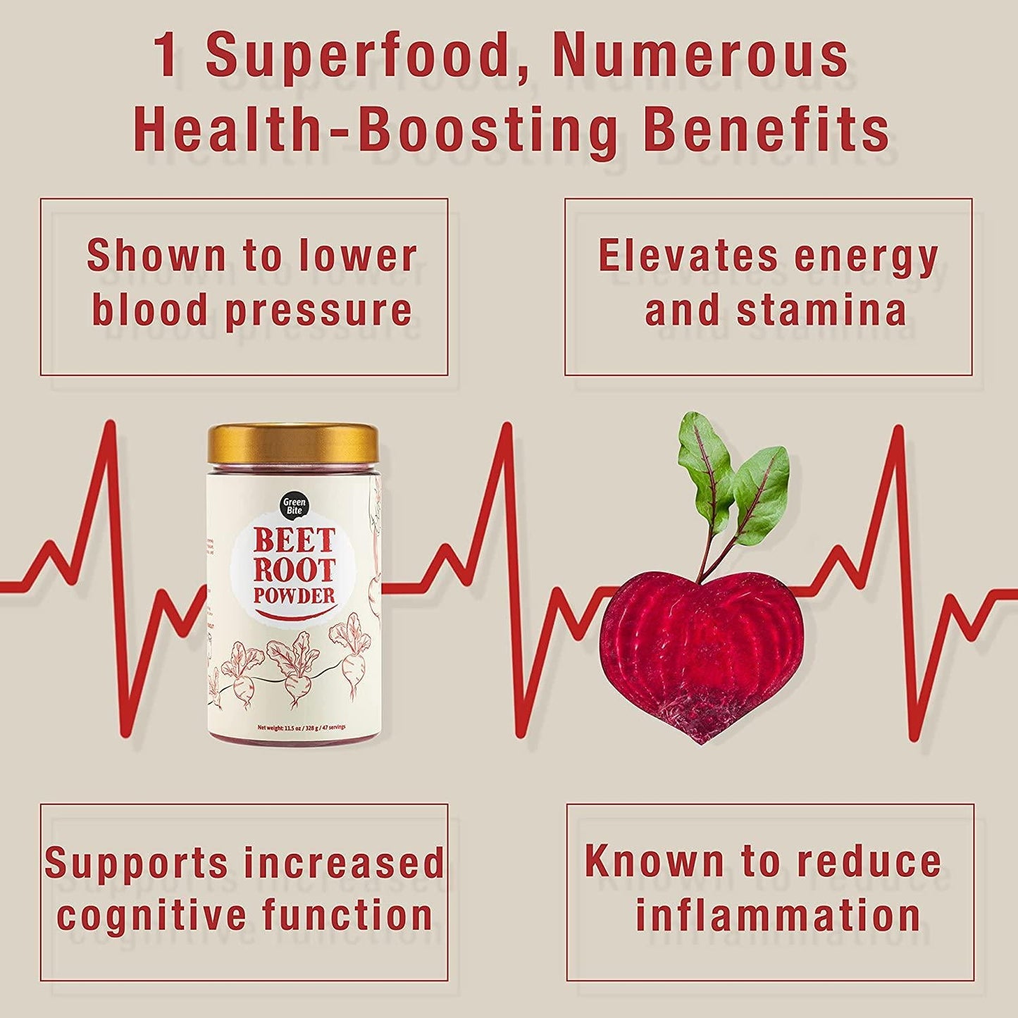 - Nifty Nitrates Enhance your wellbeing with robust blood flow. Your beetroot powder is chock-full of wholesome dietary nitrates that are known to lower blood pressure and elevate energy levels.