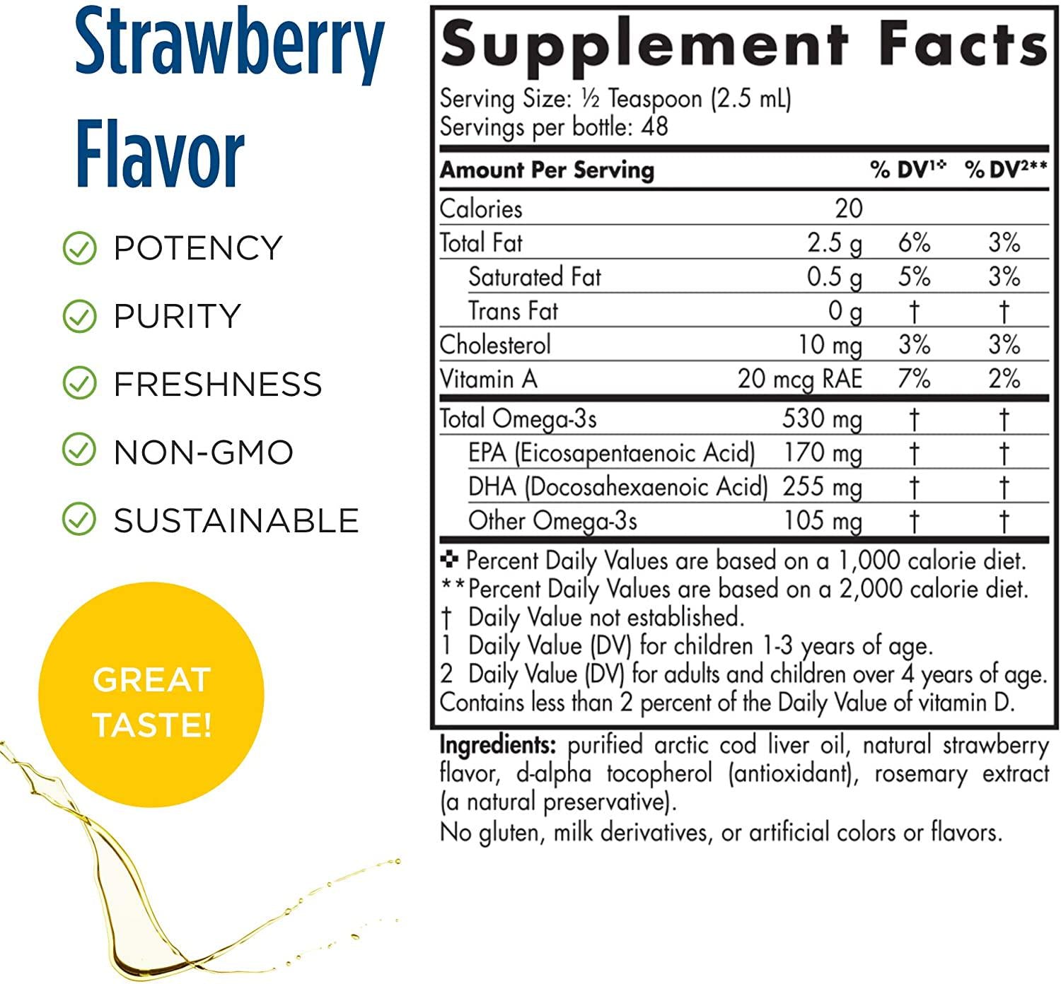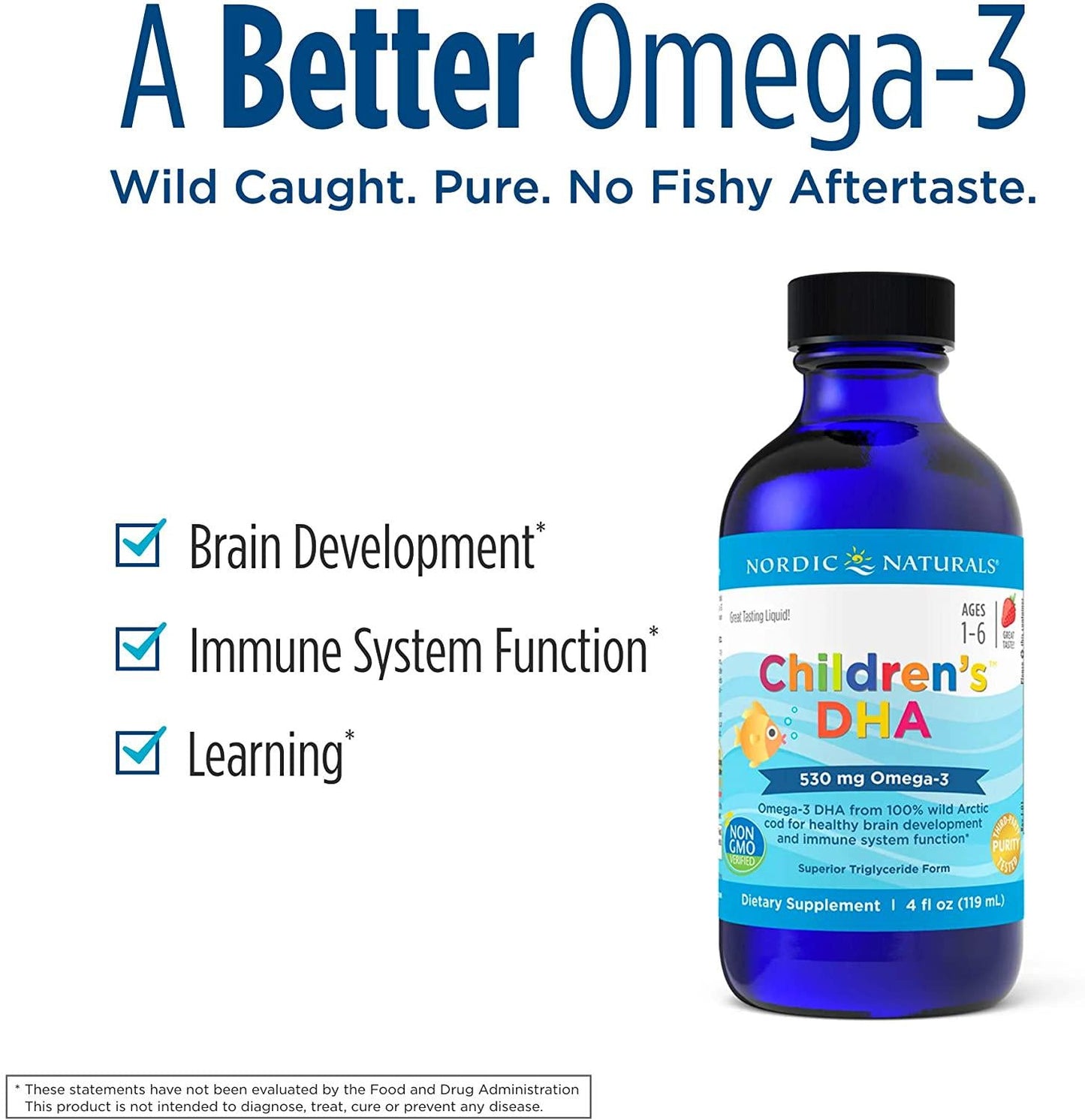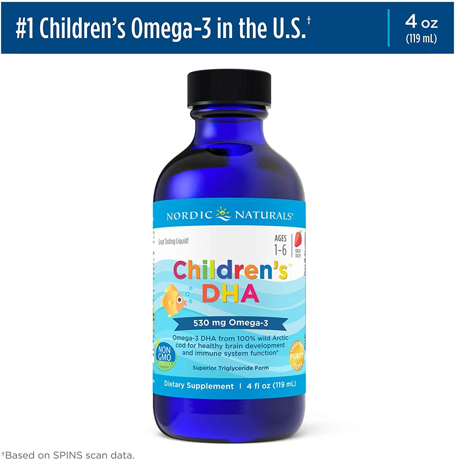 Ages 1-6 Great Taste! 530 mg Omega-3 Non GMO Verified Superior Triglyceride Form Third-Party Purity Tested Dietary Supplement Molecularly Distilled - Guaranteed Purity Gold Standard Wild Caught Pure Friend of the Sea CertifiedOmega-3 DHA from 100% wild Arctic cod for healthy brain development and immune system function.Made from 100% wild Arctic cod, Nordic Naturals Children's DHA is the #1 selling children's omega-3 in the U.S. This formula supports learning, brain development, and a healthy nervous system.Every batch or Nordic Naturals fish oils is tested by a third-party certified lab for environmental toxins, including heavy metals. All fish oils are in the triglyceride form and surpass the strictest international standards for purity and freshness.Based on SPINS scan data.