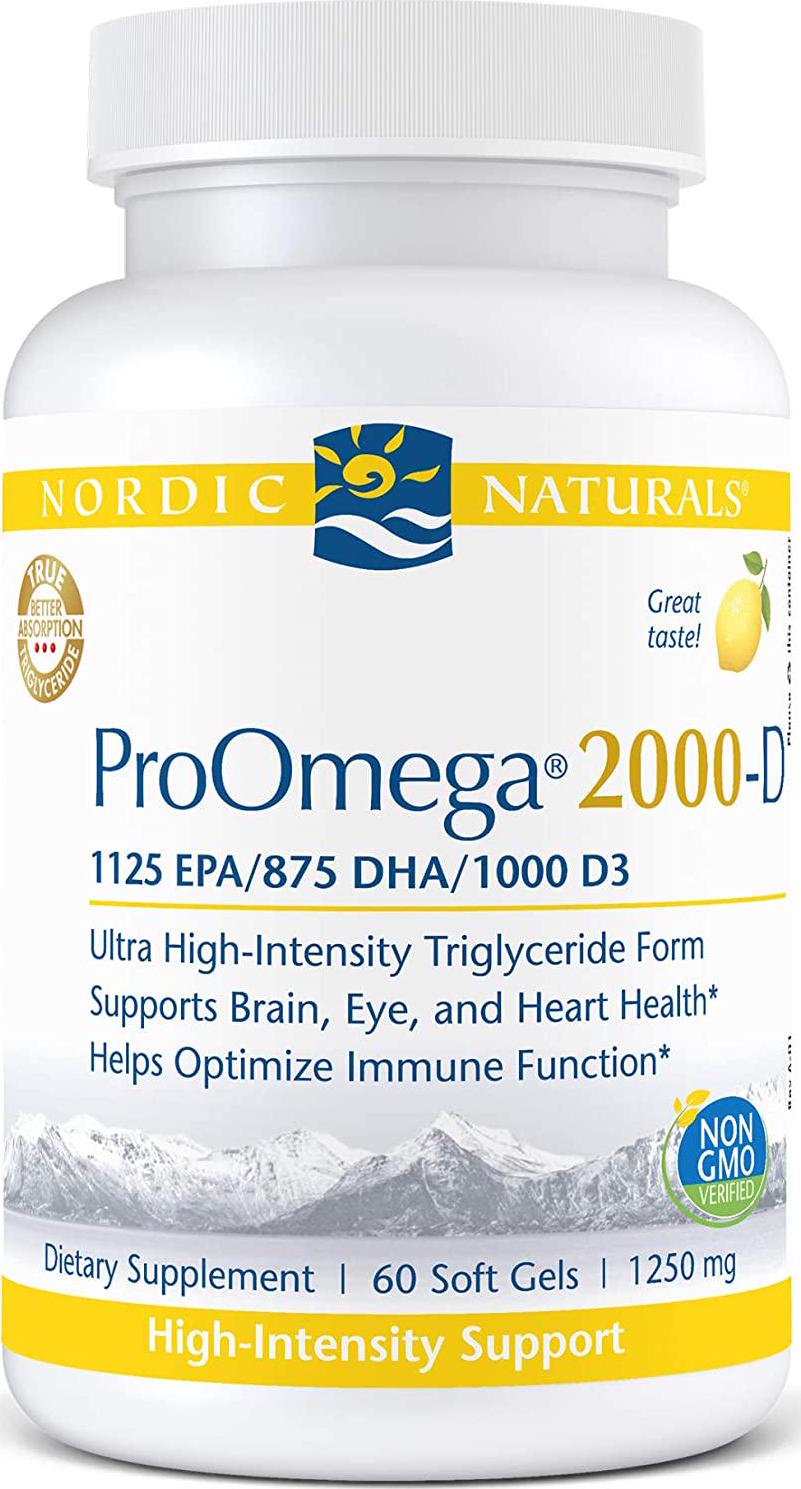 - DOCTOR-RECOMMENDED FORMULA - Nordic Naturals ProOmega 2000-D features our highest concentration omega-3 fish oil in soft gels. The added Vitamin D3 aids in calcium absorption & supports mood, joint & immune system health.