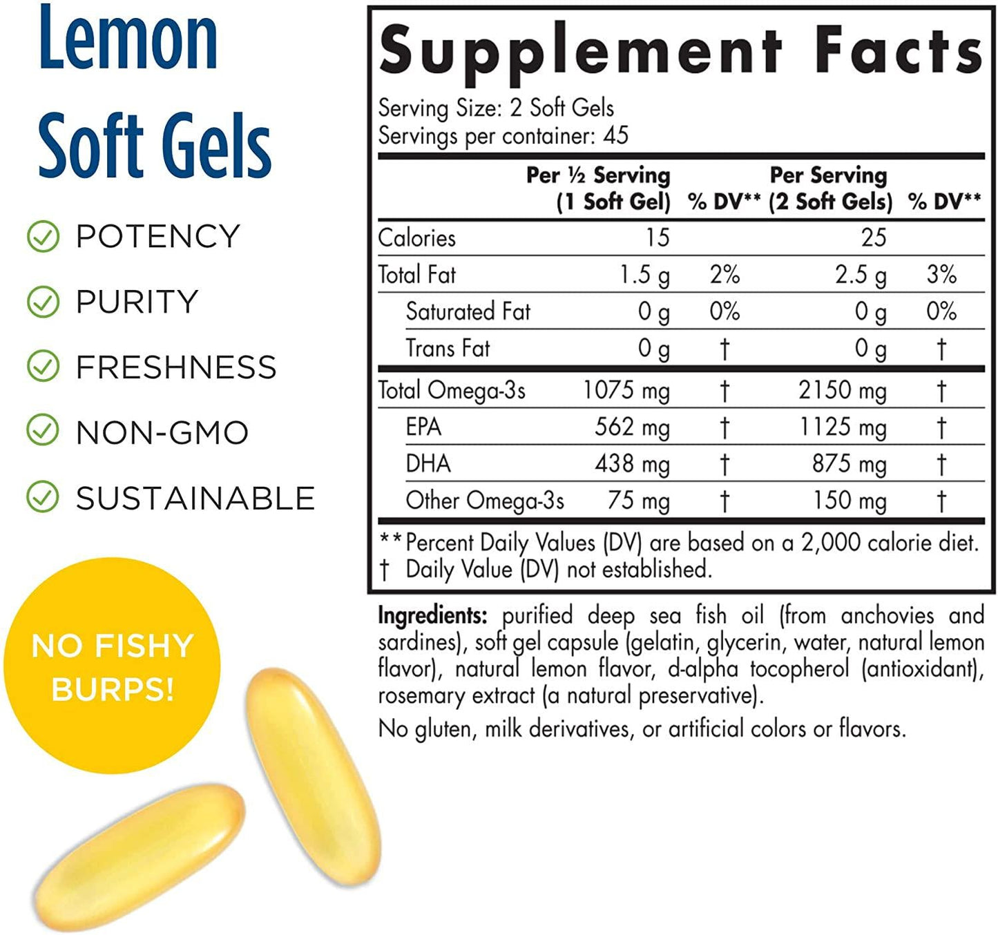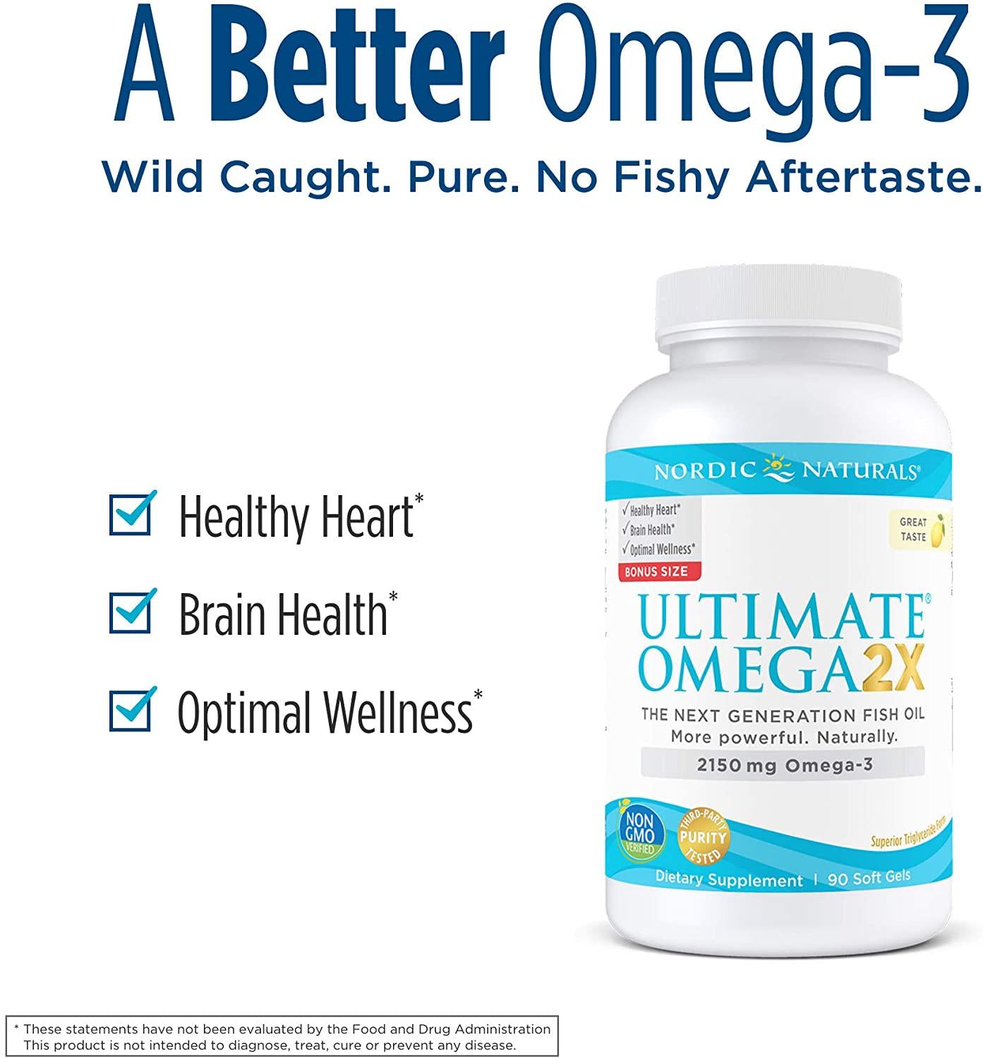 Nordic Naturals Ultimate Omega 2X, Lemon Flavor - 2150 mg Omega-3-90 Soft Gels - High-Potency Omega-3 Fish Oil with EPA and DHA - Promotes Brain and Heart Health - Non-GMO - 45 Servings
