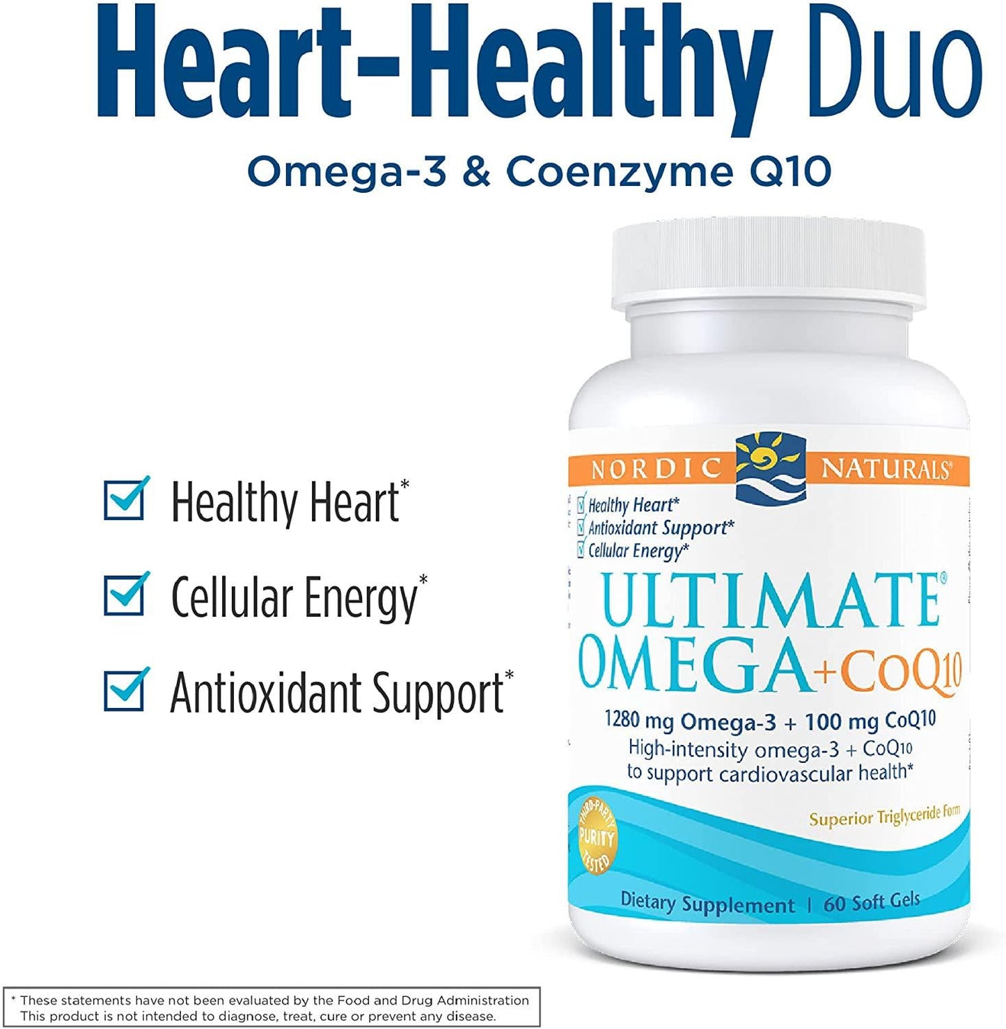 Nordic Naturals Ultimate Omega + CoQ10, Lemon - 60 Soft Gels - 1280 mg Omega-3 + 100 mg CoQ10 - Heart Health, Cellular Energy, Antioxidant Support - Non-GMO - 30 Servings
