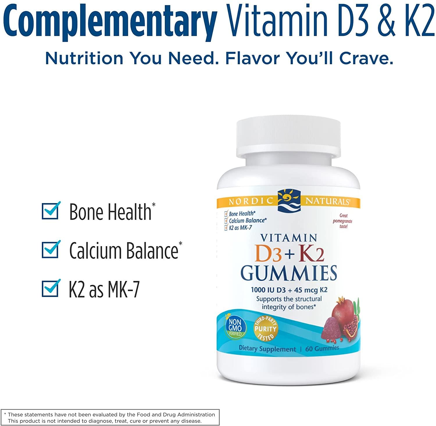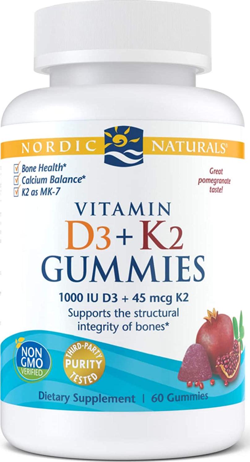 - Nordic Naturals Vitamin D3+K2 Gummies provides 1000 I.U. of vitamin D3 and 45 mcg of Vitamin K2 in each serving