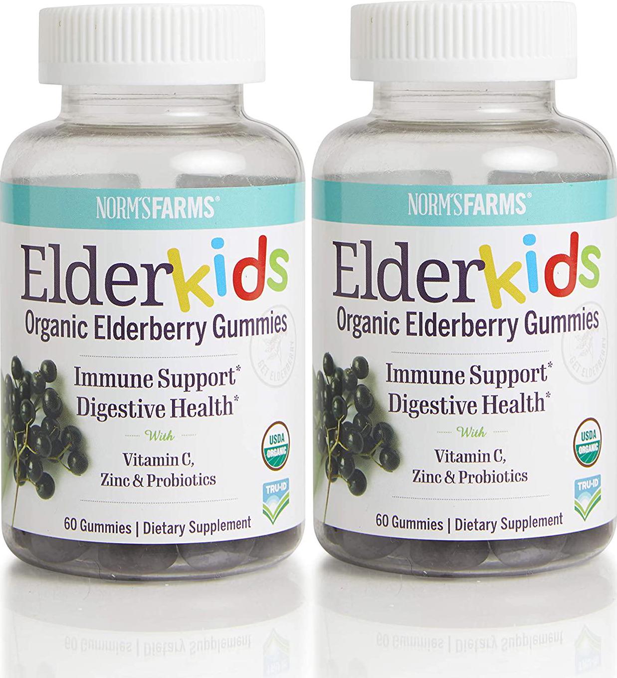 Norm's Farms ElderKids Organic Elderberry Vegan Gummies with Vitamin C, 60 Count, Pack of 2