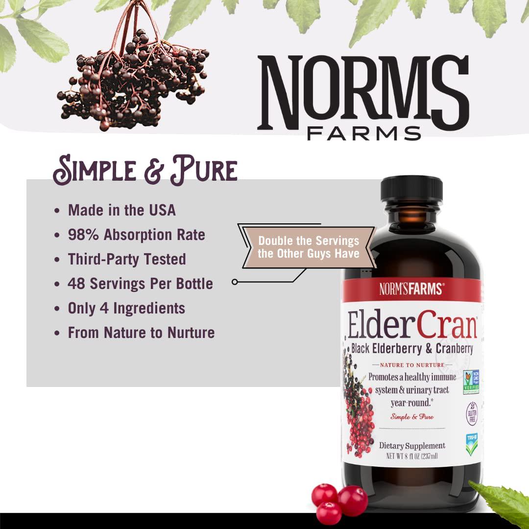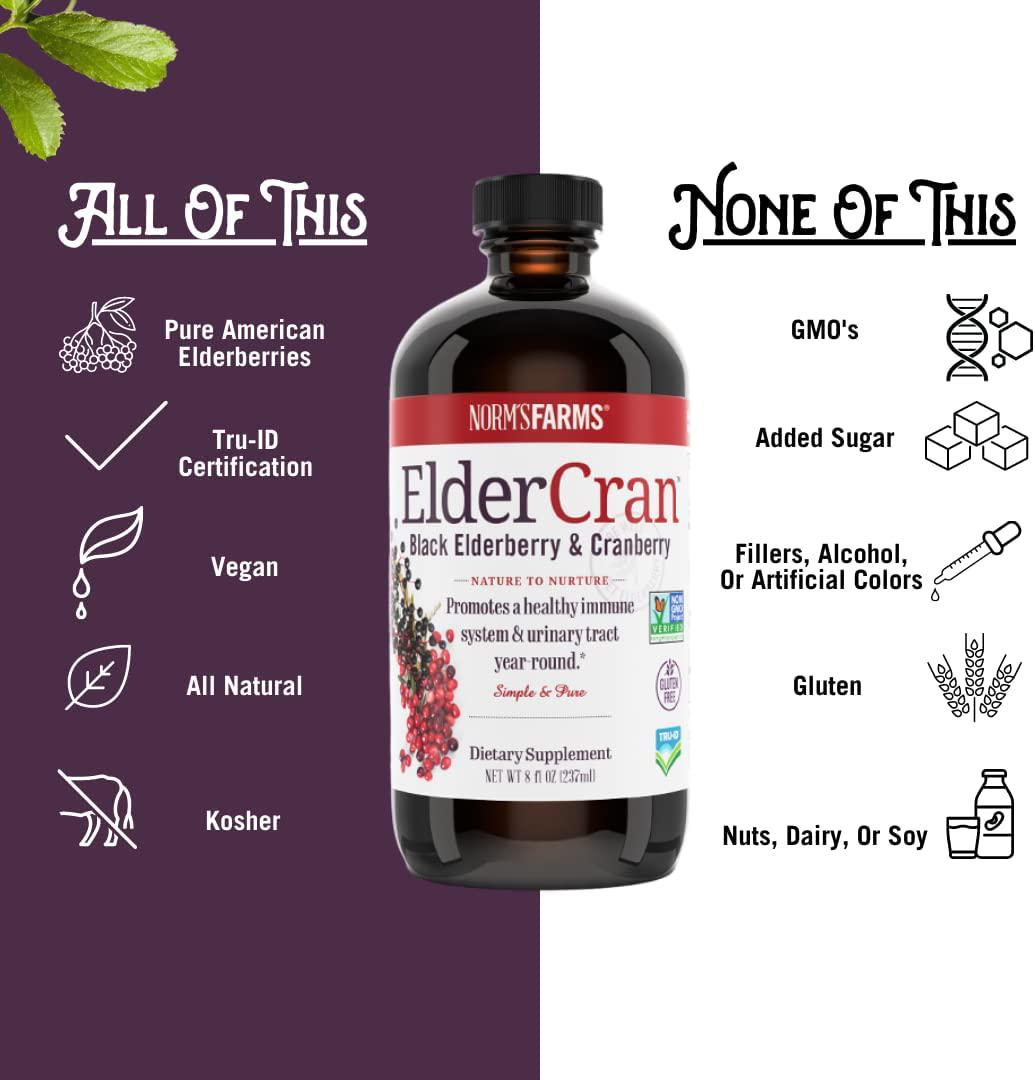 - Norm's Farms ElderCran is made with our farm-fresh Elderberry Extract, organic cranberry juice and just a touch of pear juice