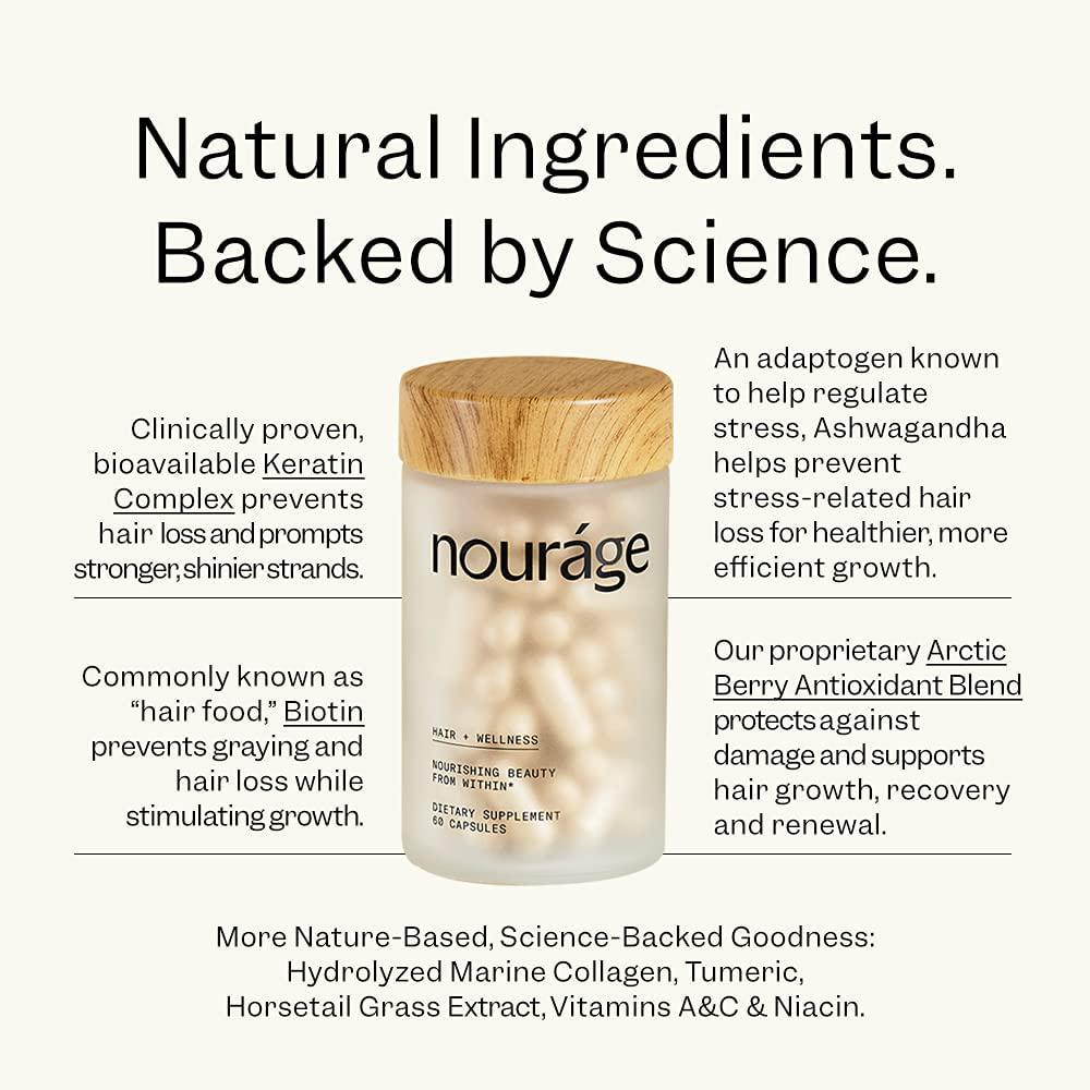 - REAL RESULTS START HERE: Want better hair Nouráge is a premium daily supplement created to give your body the nutrients it needs to grow the hair you've always wanted. The results Fuller, longer, healthier hair!