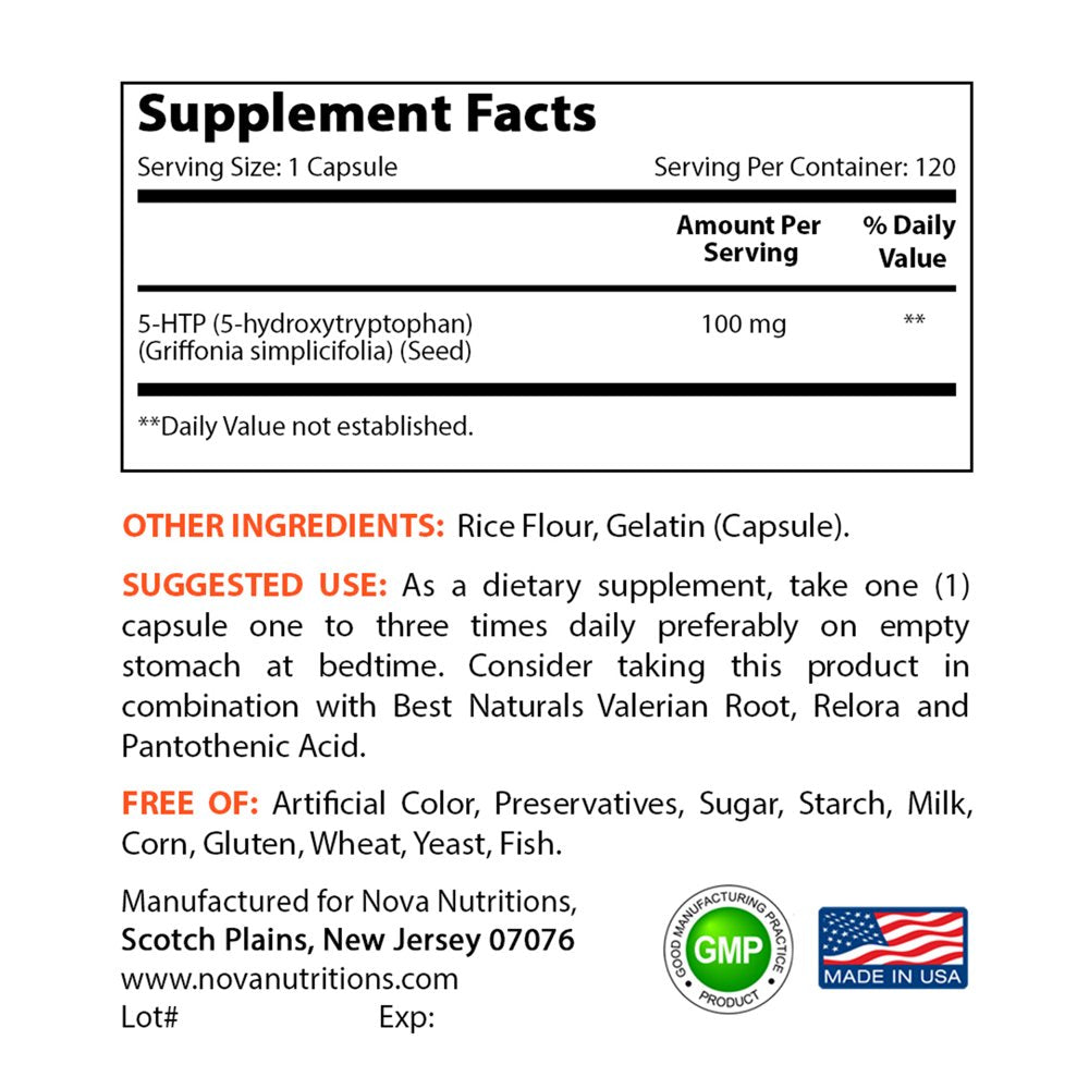 Nova Nutritions 5 HTP 100 mg 120 Capsules, 5-HTP promotes healthy sleep
